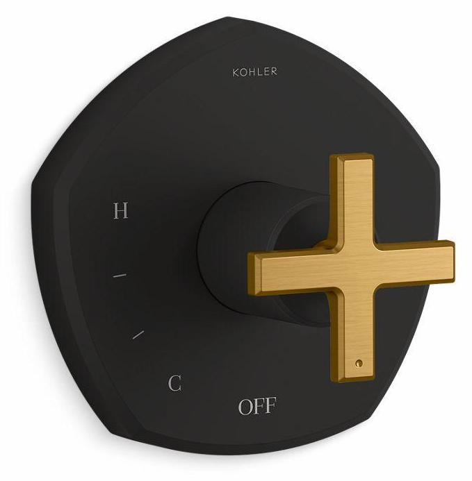 Occasion Rite-Temp Valve Trim with Cross Handle - Matte Black with Brushed Moderne Brass TS27043-3-BMB Kohler