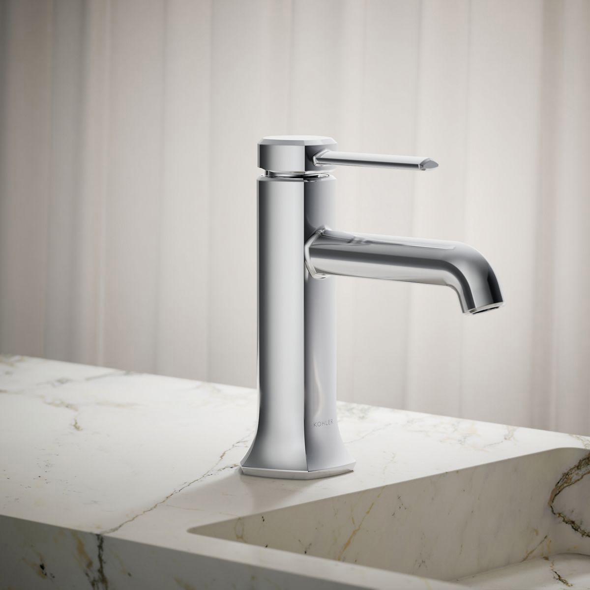 Unapologetically luxurious and truly unforgettable, Occasion bathroom faucets and accessories draw inspiration from 1960s Hollywood glamour and extravagance. Fashioned after the era’s sleek dress lines and bold car designs, the Occasion collection reflects graceful elegance, blending classic midcentury and modern design. Customize your bath with the collection’s distinctive pentagonal accents, faceted bases, flowing lines, and delicate edges. The 1.0 gpm single-handle sink faucet adds sleek style and function to your bathroom—all while conserving water.