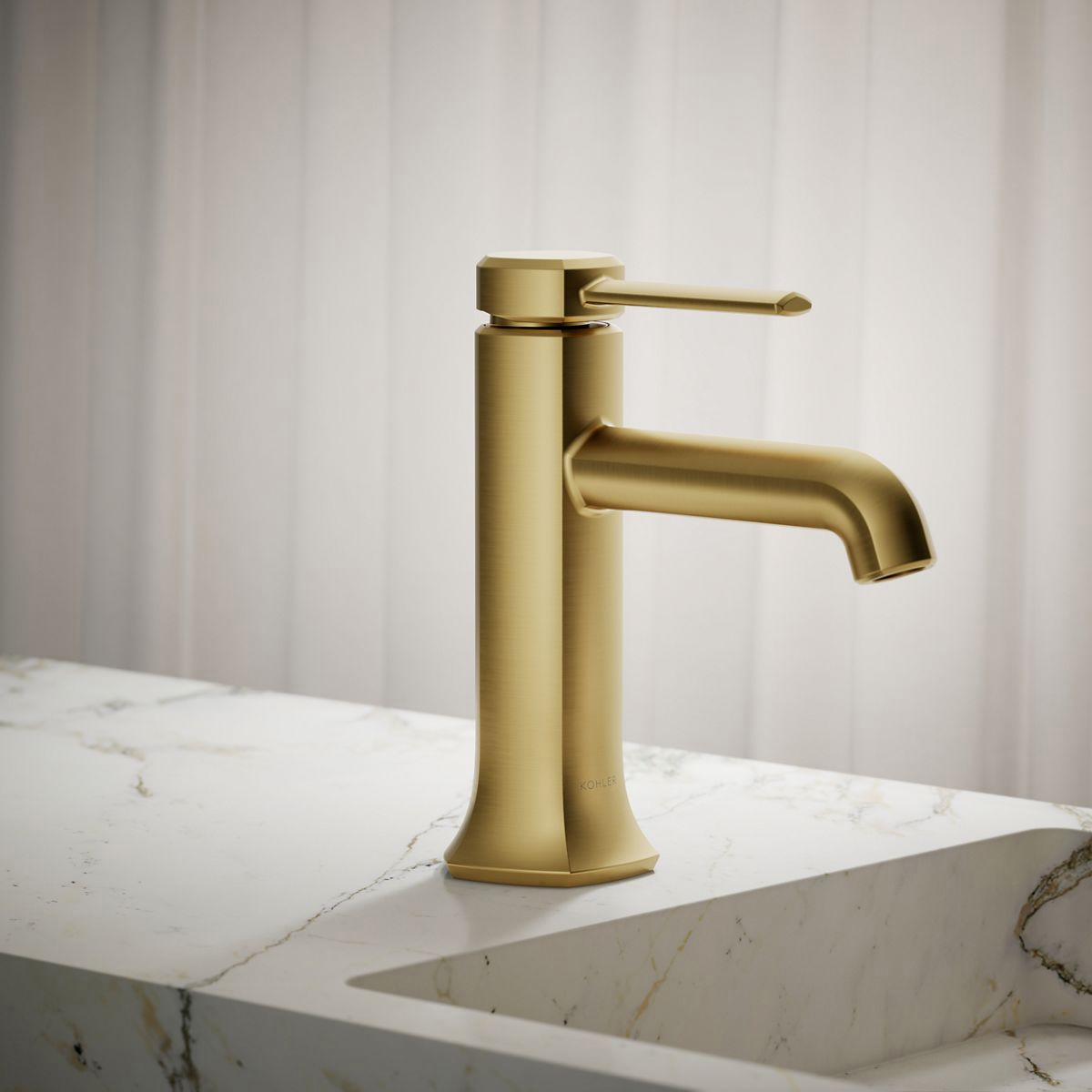 Unapologetically luxurious and truly unforgettable, Occasion bathroom faucets and accessories draw inspiration from 1960s Hollywood glamour and extravagance. Fashioned after the era’s sleek dress lines and bold car designs, the Occasion collection reflects graceful elegance, blending classic midcentury and modern design. Customize your bath with the collection’s distinctive pentagonal accents, faceted bases, flowing lines, and delicate edges. The single-handle sink faucet adds sleek style and function to your bathroom—in finishes designed to coordinate with the entire room.