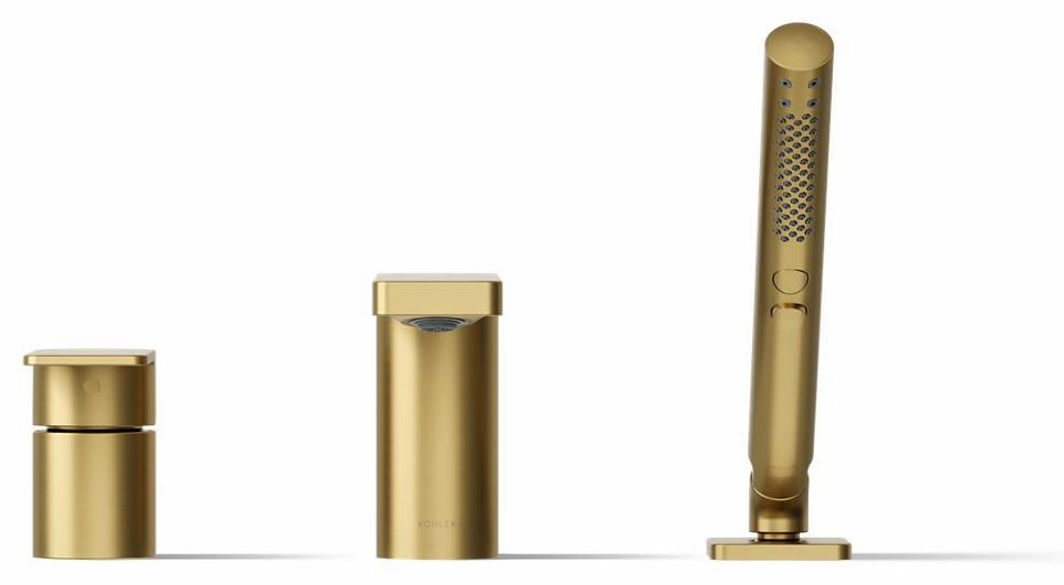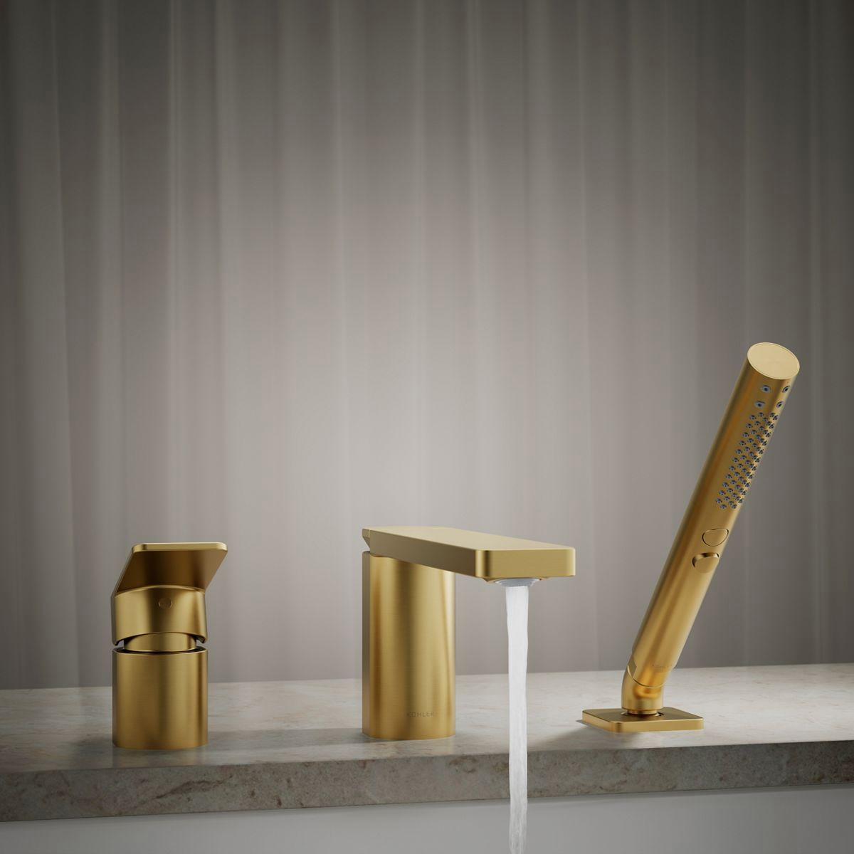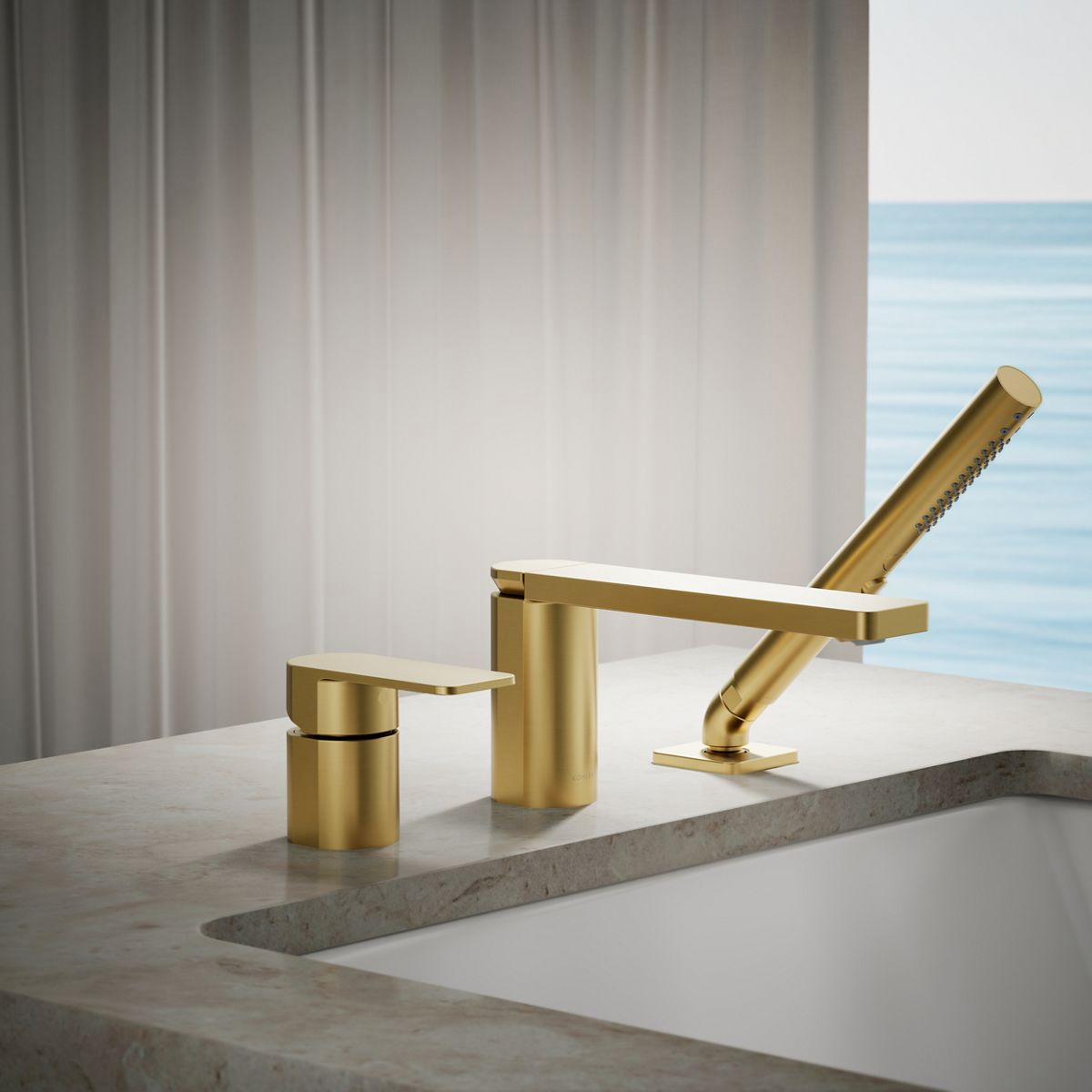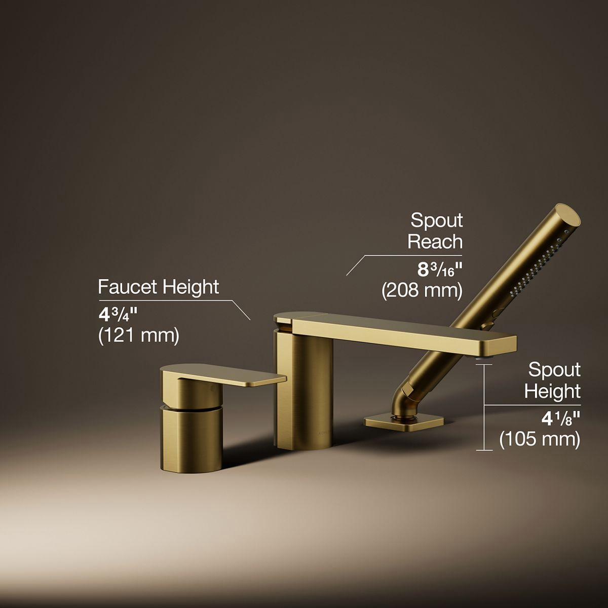 Parallel Deck Mount Tub Faucet With Hand Shower - Vibrant Brushed Moderne Brass 23488-4-2MB Kohler