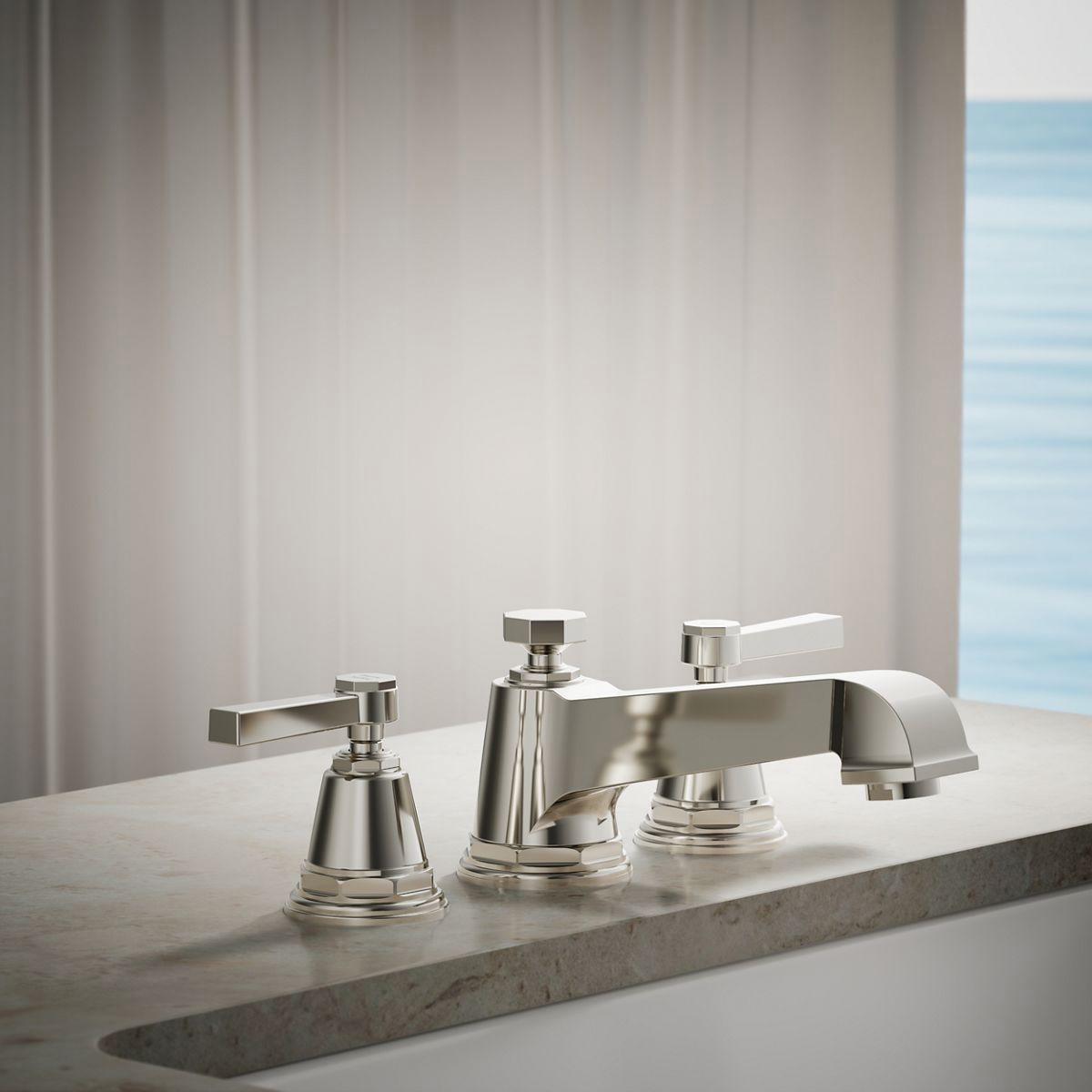 Pinstripe Pure Deck Mount Tub Faucet Trim With Lever Handles - Vibrant Polished Nickel T13140-4A-SN Kohler