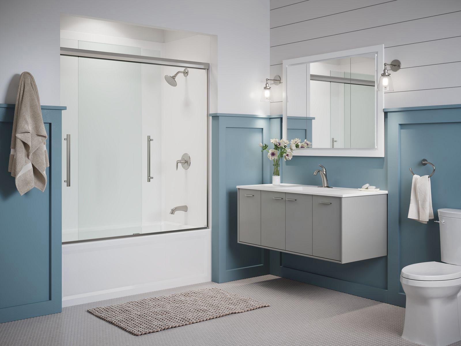 With modern style and crisp, clean design lines, Pleat brings new technology to the contemporary bath. Pleat shower doors feature a double header which conceals the wheels and door tracking system, while allowing the glass panels to rise above the header, giving the 63-9/16” tall door a sleek, lofted and airy look. The Stays Closed feature inside the header keeps the door firmly closed, providing excellent water containment, and fully bypassable glass panels make installation easier than ever and allow for adjustability while the door is hanging. Pleat’s 5/16" thick glass offers a luxurious, heavier feel.