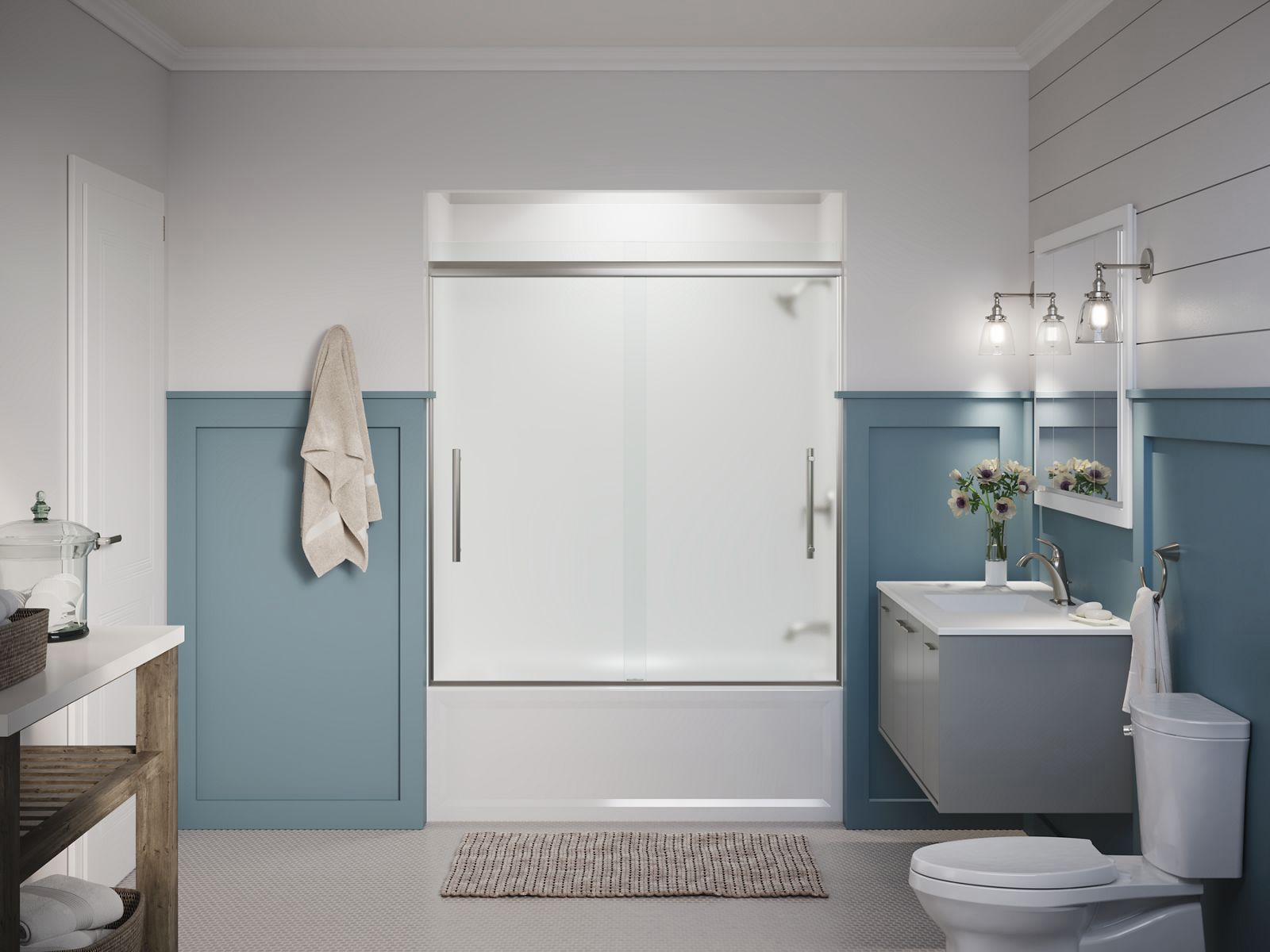 Pleat 63-9/16" x 54-5/8"-59-5/8" Frameless Sliding Tub Door - Anodized Brushed Nickel 707602-8D3-BNK Kohler