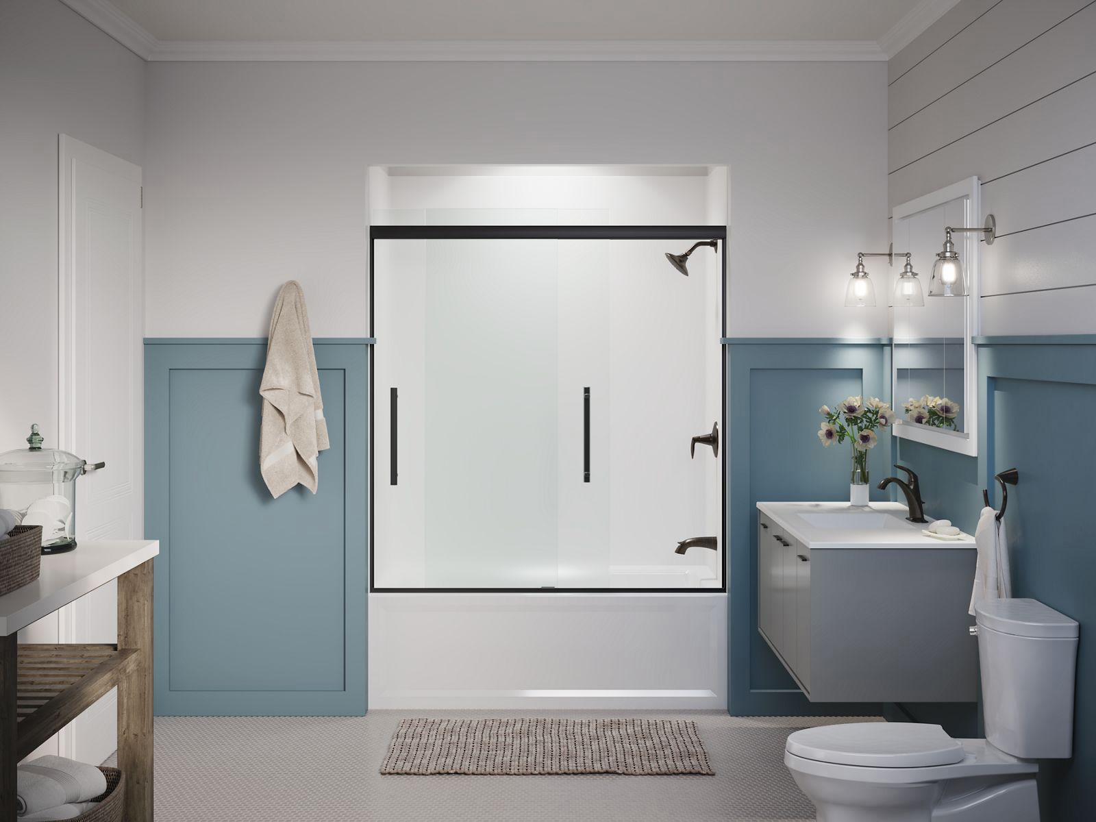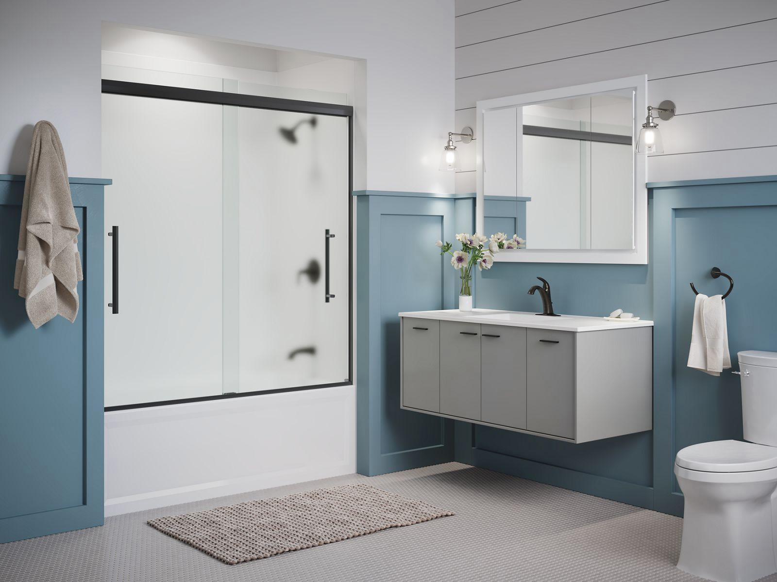 With modern style and crisp, clean design lines, Pleat brings new technology to the contemporary bath. Pleat shower doors feature a double header which conceals the wheels and door tracking system, while allowing the glass panels to rise above the header, giving the 63-9/16” tall door a sleek, lofted and airy look. The Stays Closed feature inside the header keeps the door firmly closed, providing excellent water containment, and fully bypassable glass panels make installation easier than ever and allow for adjustability while the door is hanging. Pleat’s 5/16" thick glass offers a luxurious, heavier feel.