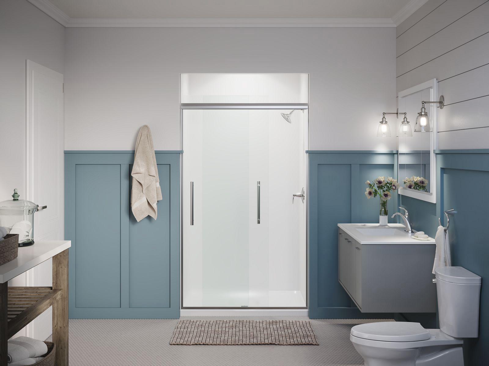 With modern style and crisp, clean design lines, Pleat brings new technology to the contemporary bath. Pleat shower doors feature a double header which conceals the wheels and door tracking system, while allowing the glass panels to rise above the header, giving the 79-1/16” tall door a sleek, lofted and airy look. The Stays Closed feature inside the header keeps the door firmly closed, providing excellent water containment, and fully bypassable glass panels make installation easier than ever and allow for adjustability while the door is hanging. Pleat’s 5/16 thick glass offers a luxurious, heavier feel.