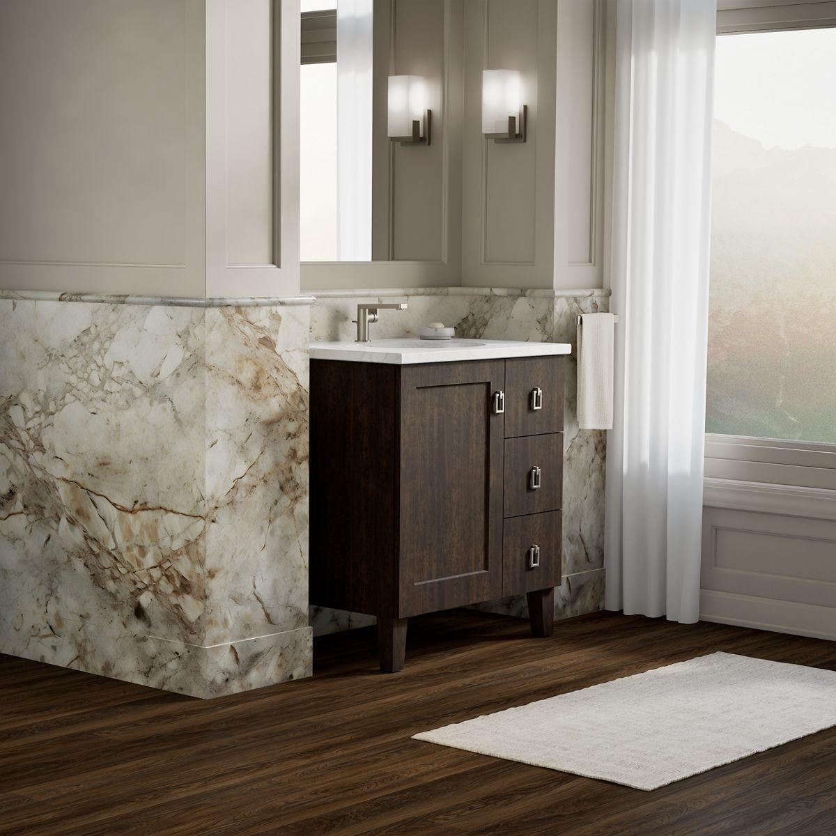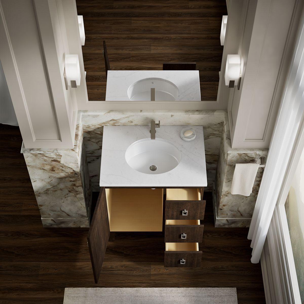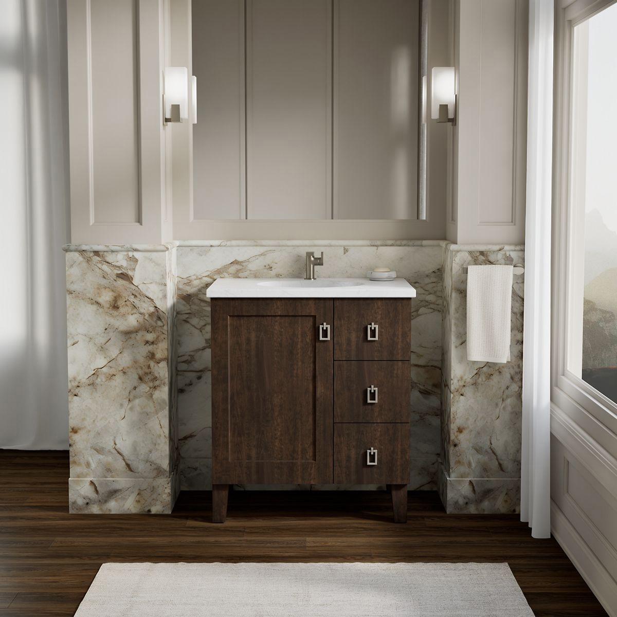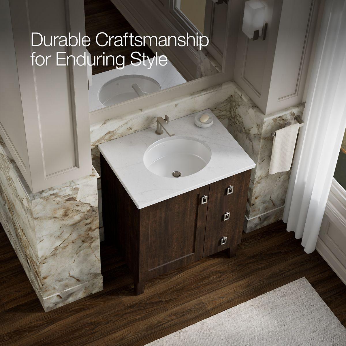 - Combines with Ceramic/Impressions®, Solid/Expressions®, and Iron/Impressions® vanity tops (sold separately) for a complete vanity.
