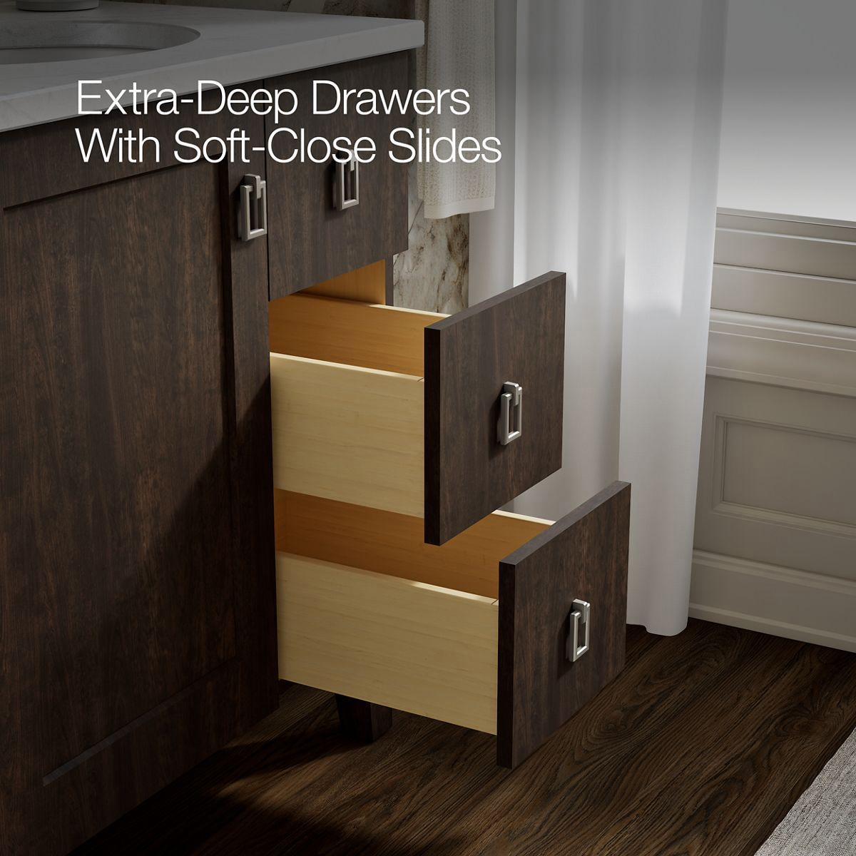 - Full-extension 18 (457 mm) depth drawers with soft-close undermount slides for smooth opening