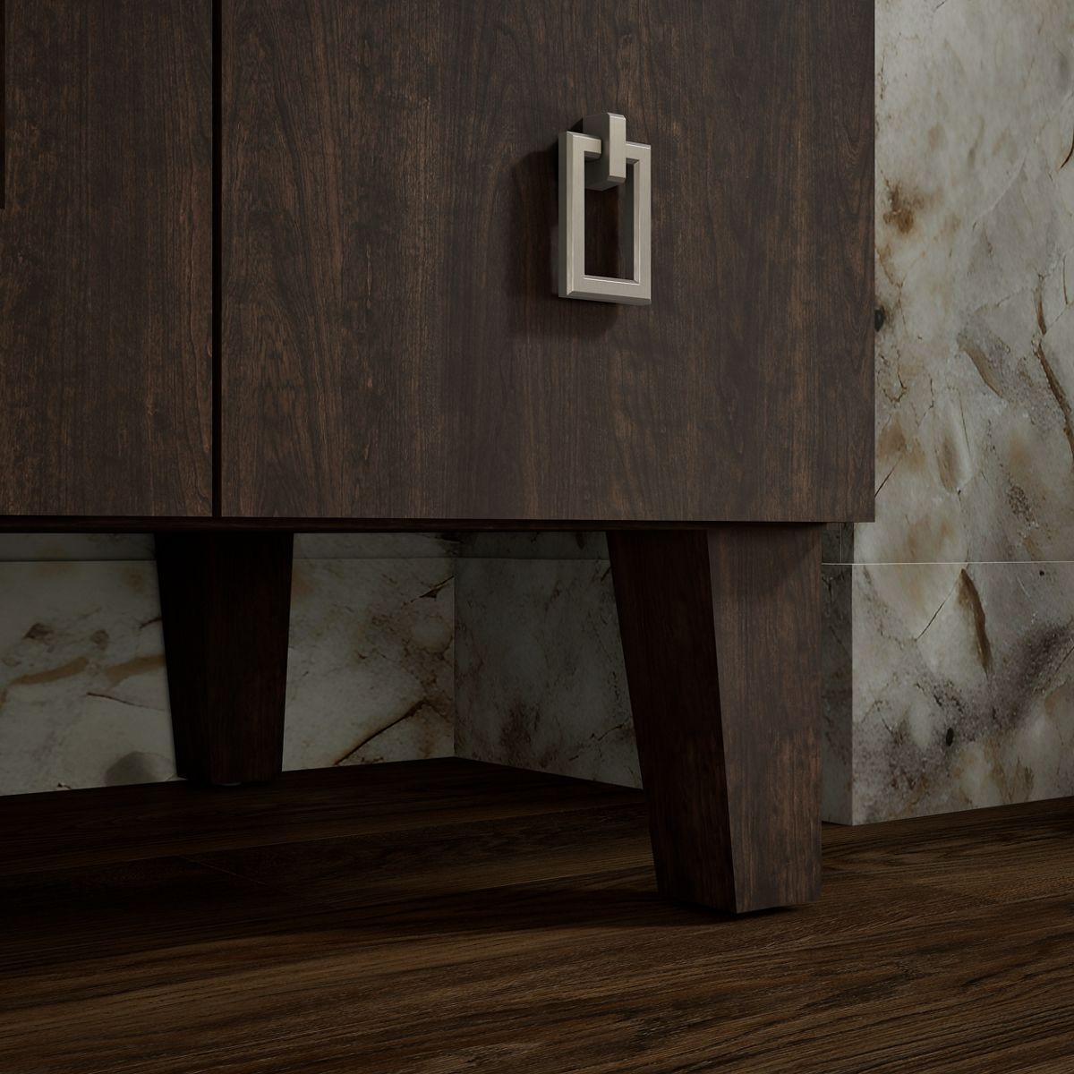 - Legs offer the polished look of furniture in the bathroom.