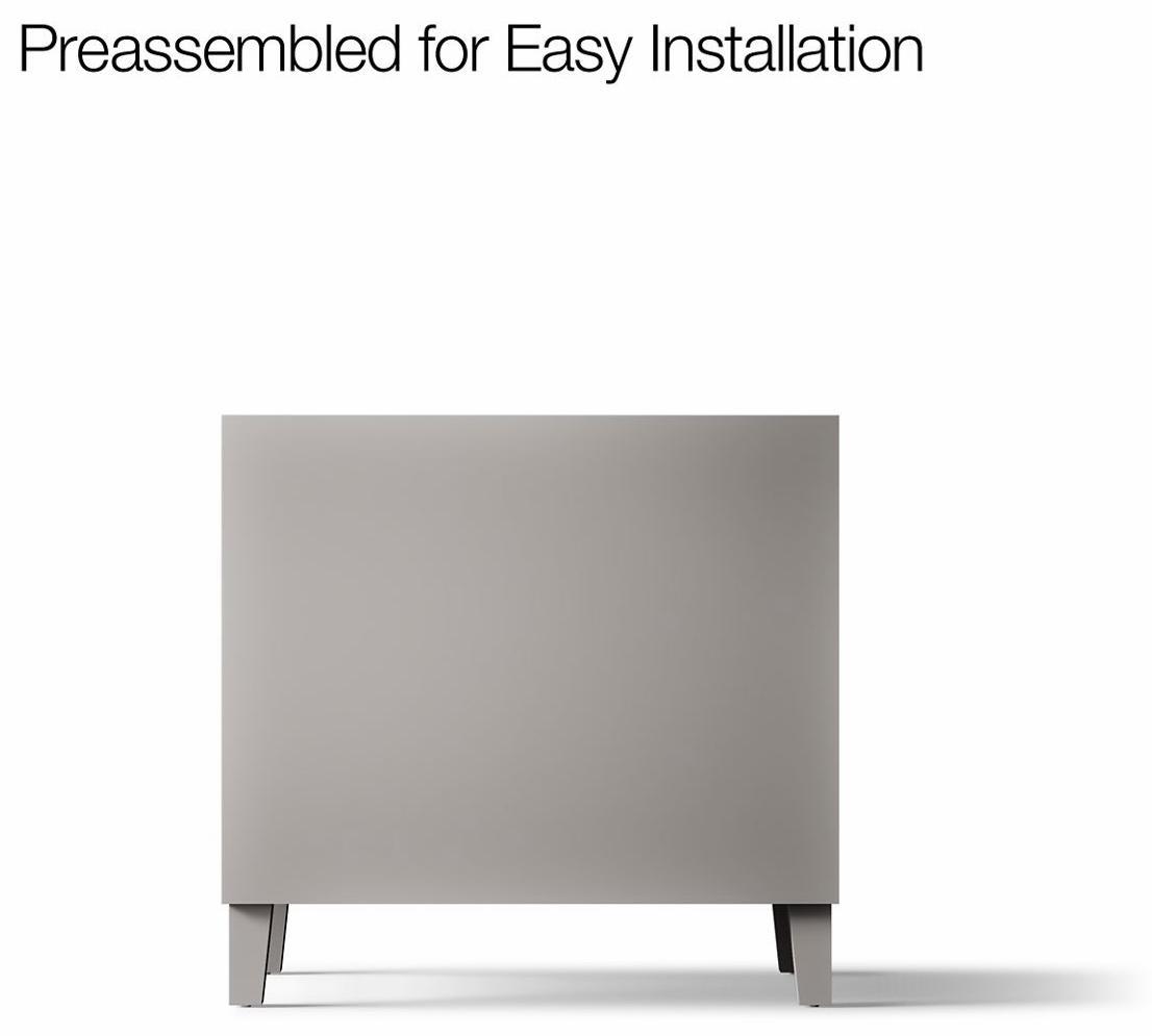 - Three-way adjustable slow-close door hinges for easy cabinet access.
