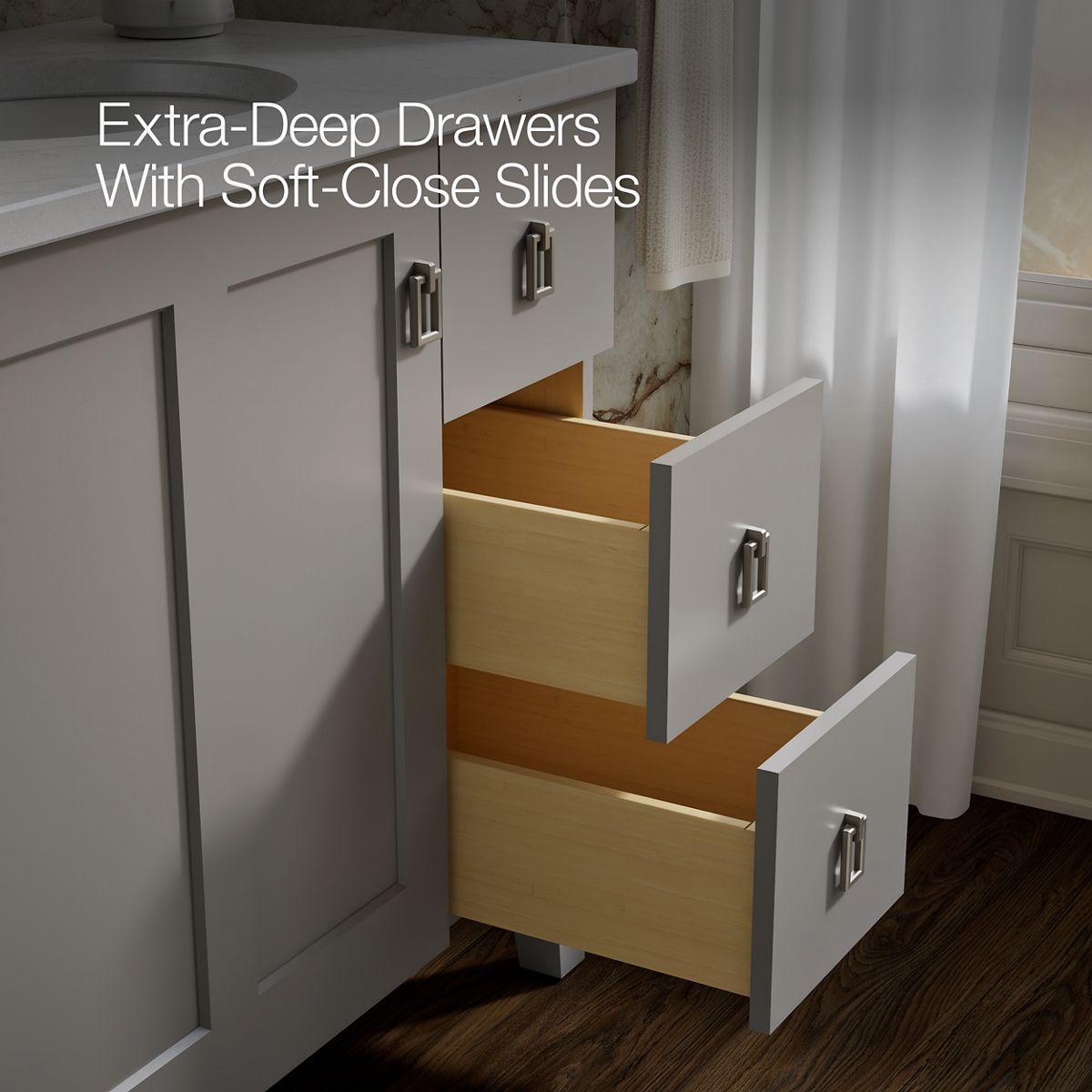 - Full-extension 18 (457 mm) depth drawers with soft-close undermount slides for smooth opening