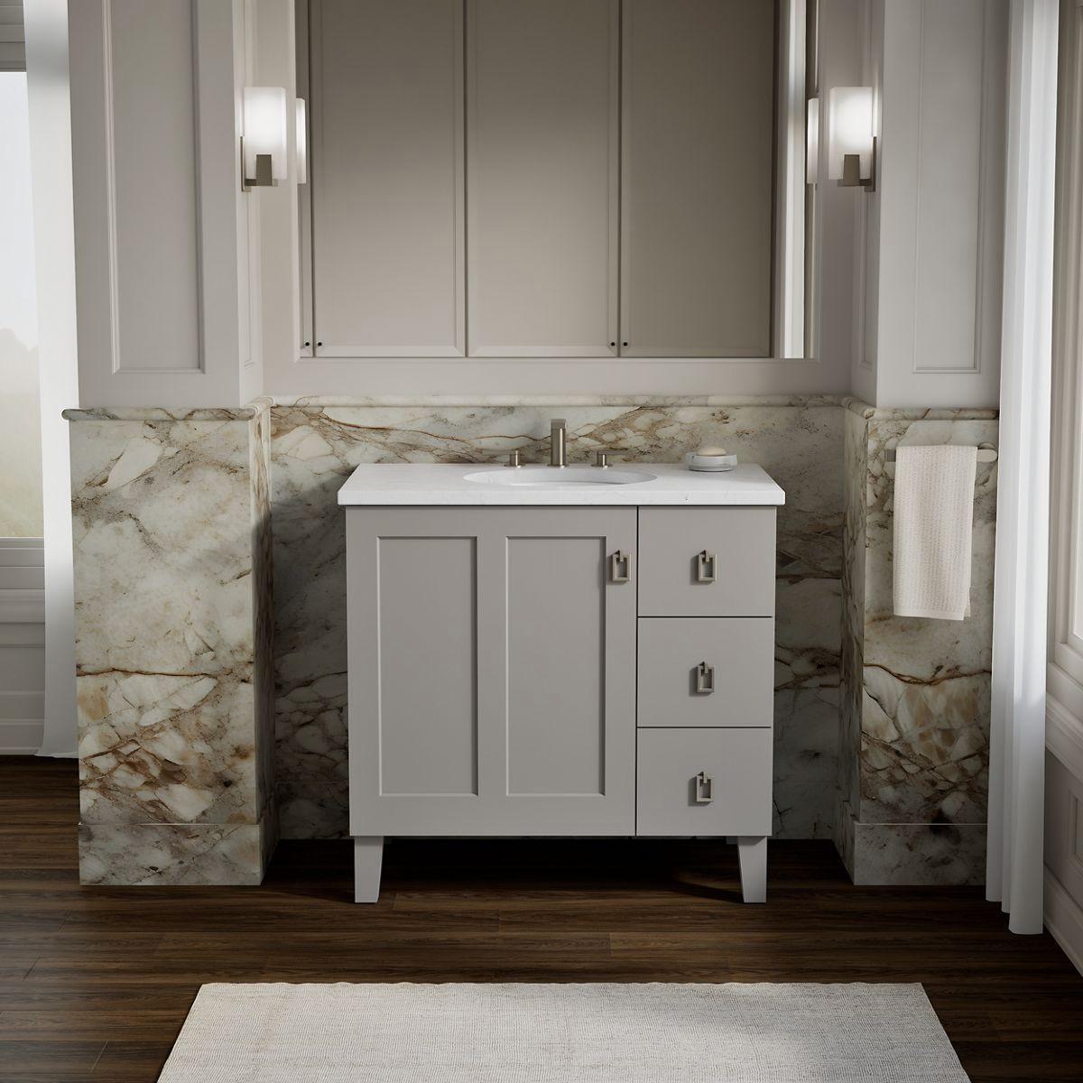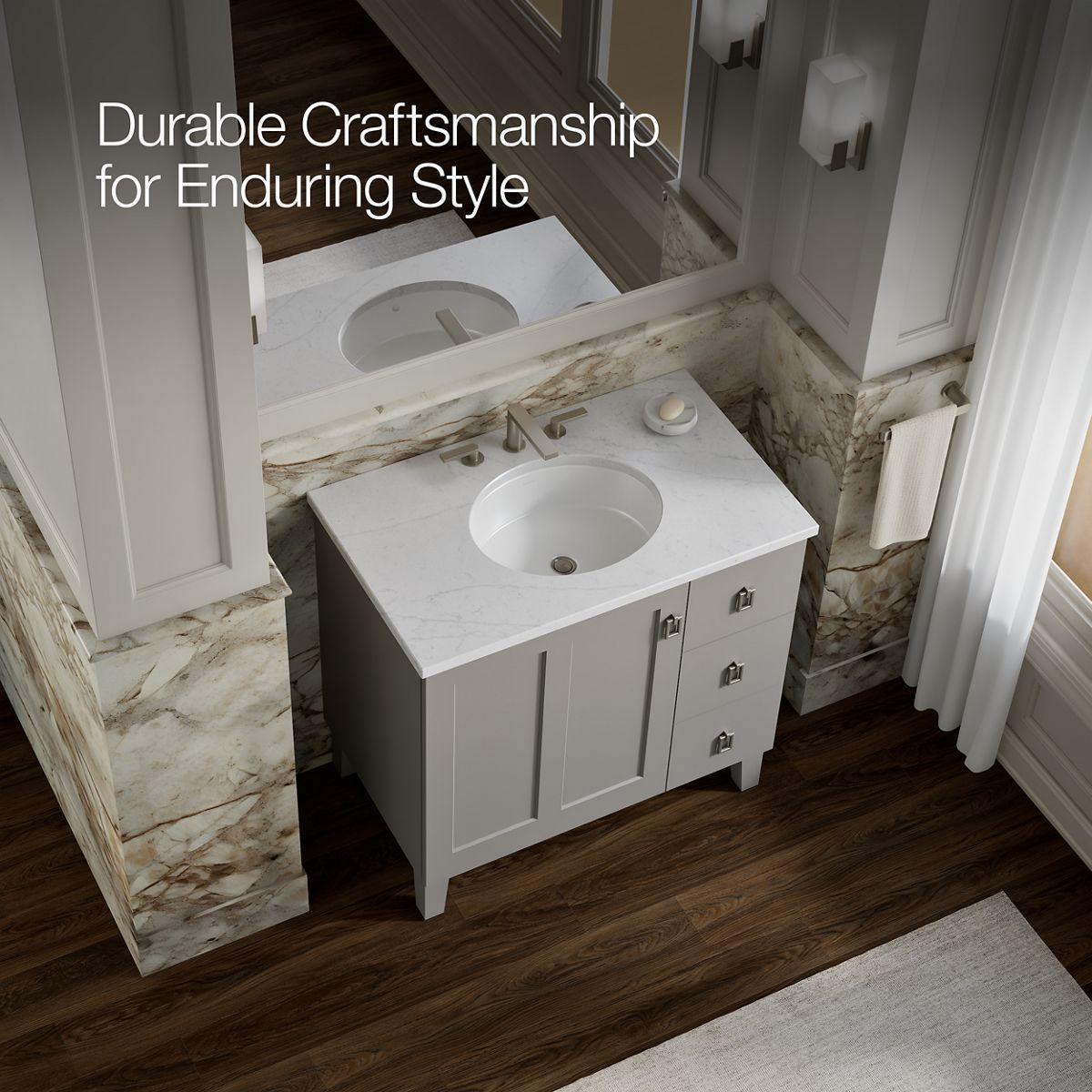 - Combines with Ceramic/Impressions®, Solid/Expressions®, and Iron/Impressions® vanity tops (sold separately) for a complete vanity.