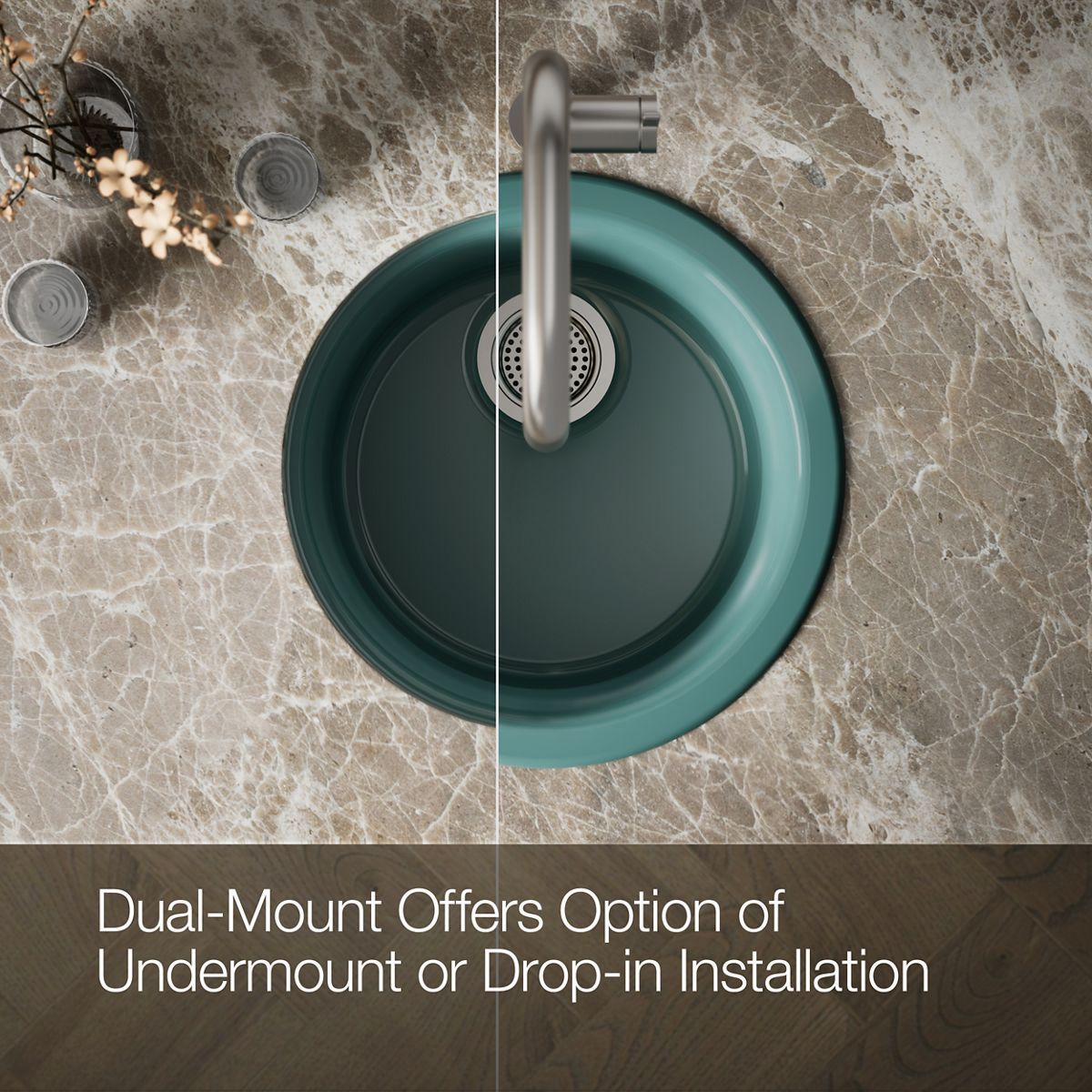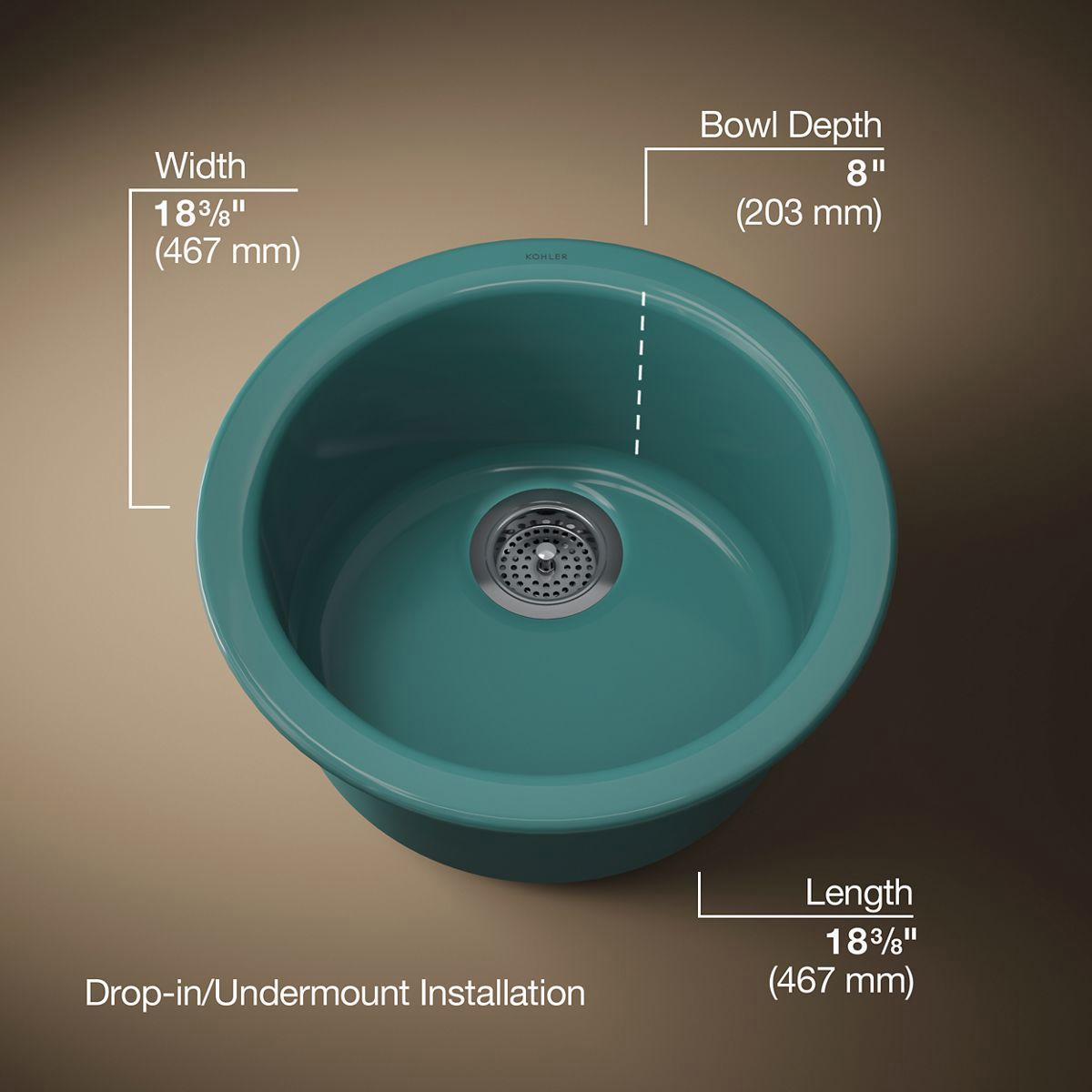 Entertain in grand style with the Porto Fino bar sink. Designed to simplify food preparation, the rounded shape and flat bottom make washing vegetables or glasses easier. Made of enameled cast iron, this sink resists scratches, burns and stains, for years of beautiful