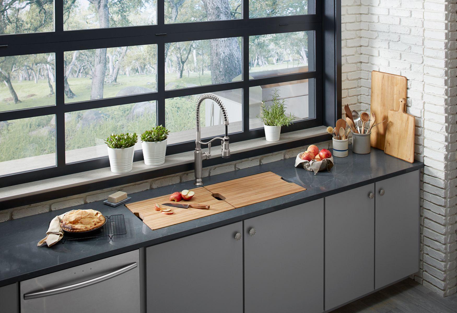 - Works with all standard countertop thicknesses. Pairs best with 30 mm countertop thickness if a flush surface between counter and cutting board is desired.