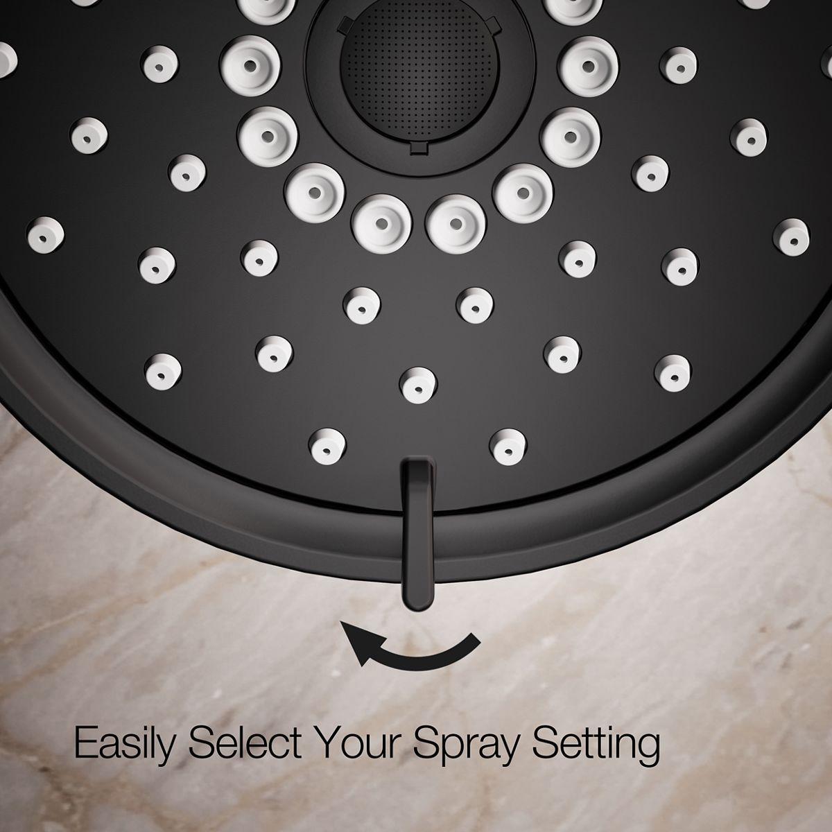 - Multifunction showerhead and handshower each have advanced spray engines to provide three experiences: full coverage, pulsating massage, and silk spray.