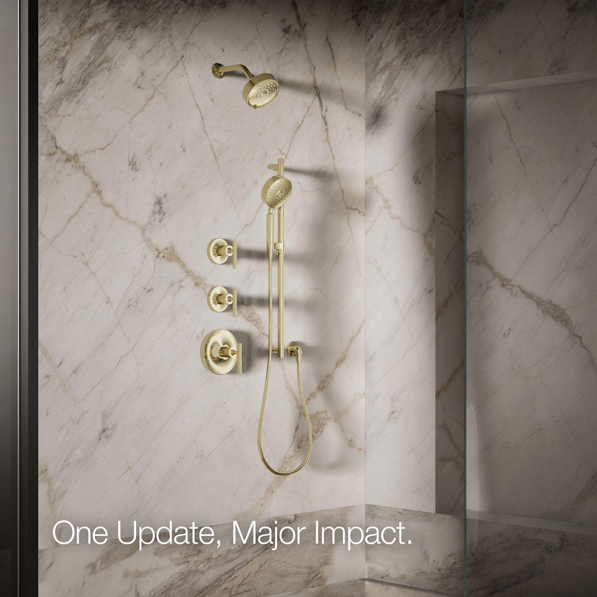 - Multifunction showerhead and handshower each have advanced spray engines to provide three experiences: full coverage, pulsating massage, and silk spray