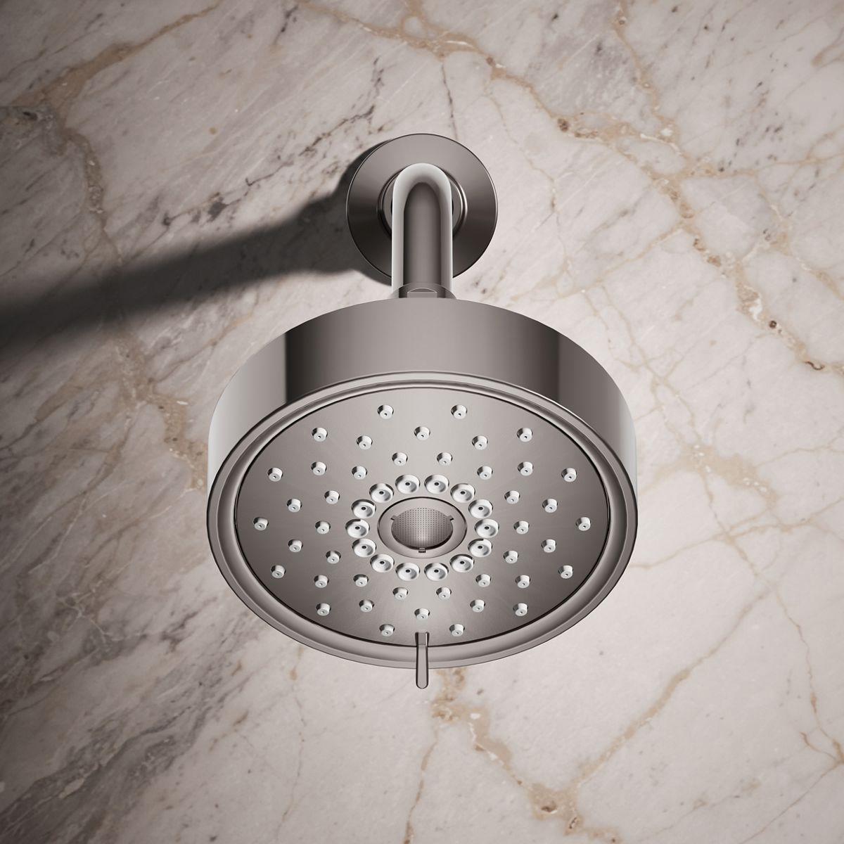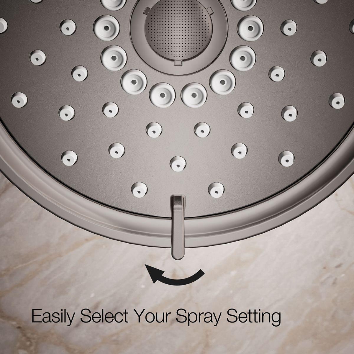 - Multifunction showerhead and handshower each have advanced spray engines to provide three experiences: full coverage, pulsating massage, and silk spray.