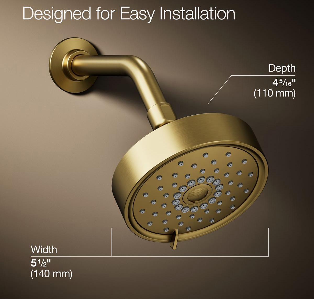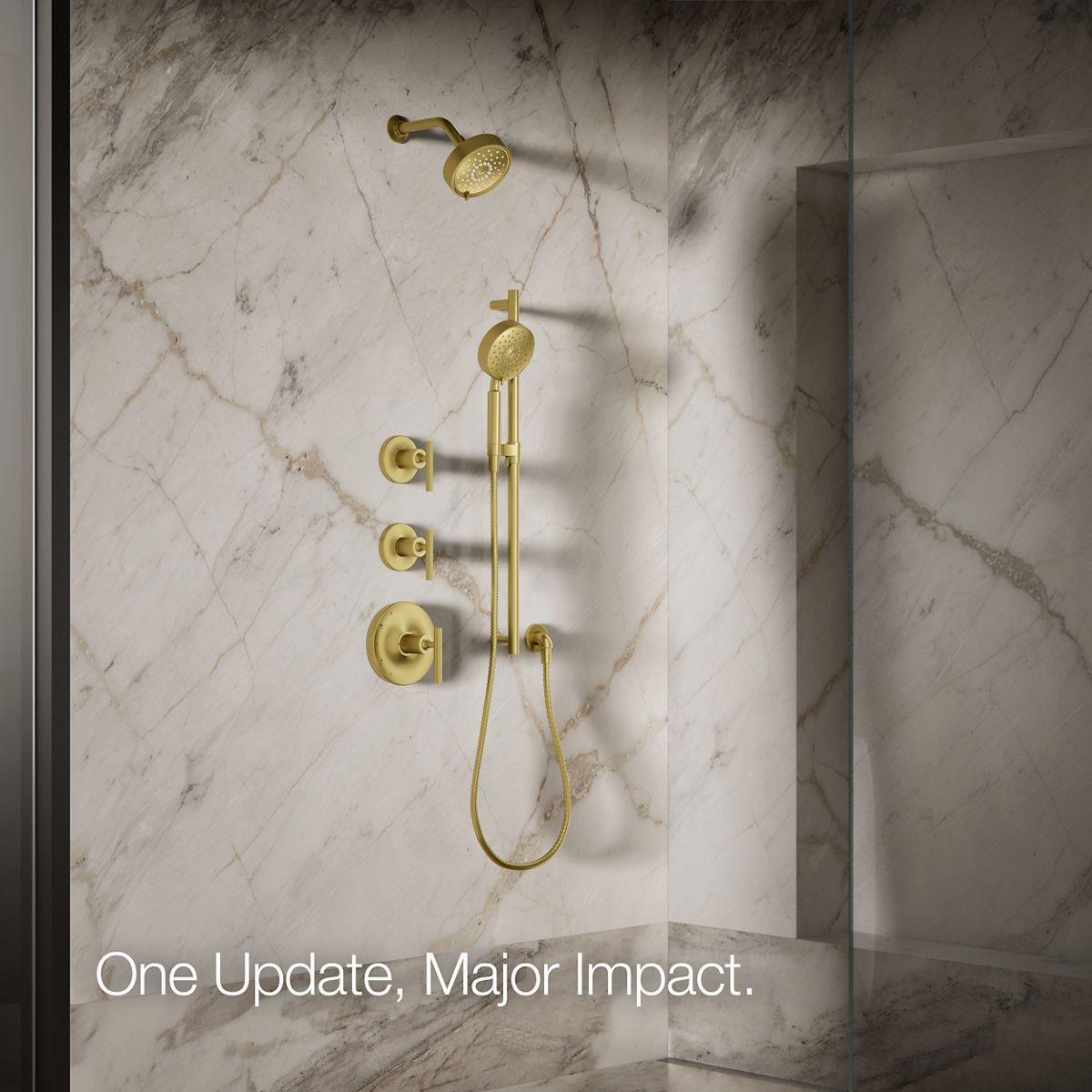 - Multifunction showerhead and handshower each have advanced spray engines to provide three experiences: full coverage, pulsating massage, and silk spray.