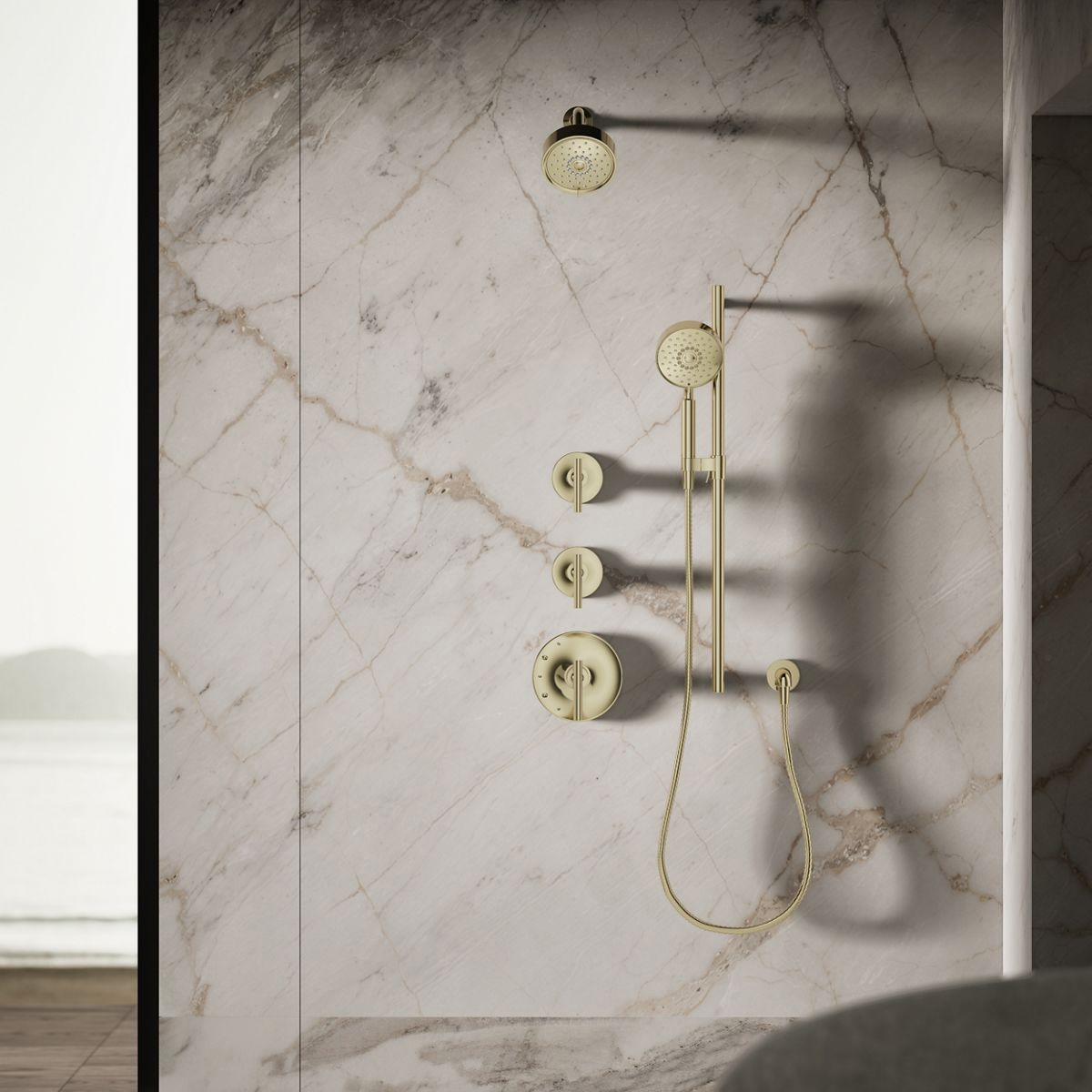 - Multifunction showerhead and handshower each have advanced spray engines to provide three experiences: full coverage, pulsating massage, and silk spray.