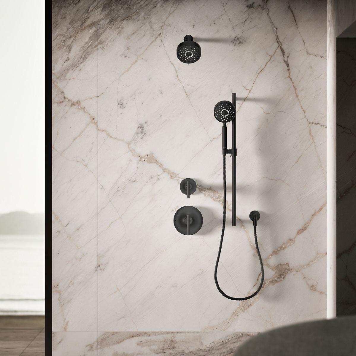 - Multifunction showerhead and handshower each have advanced spray engines to provide three experiences: full coverage, pulsating massage, and silk spray.