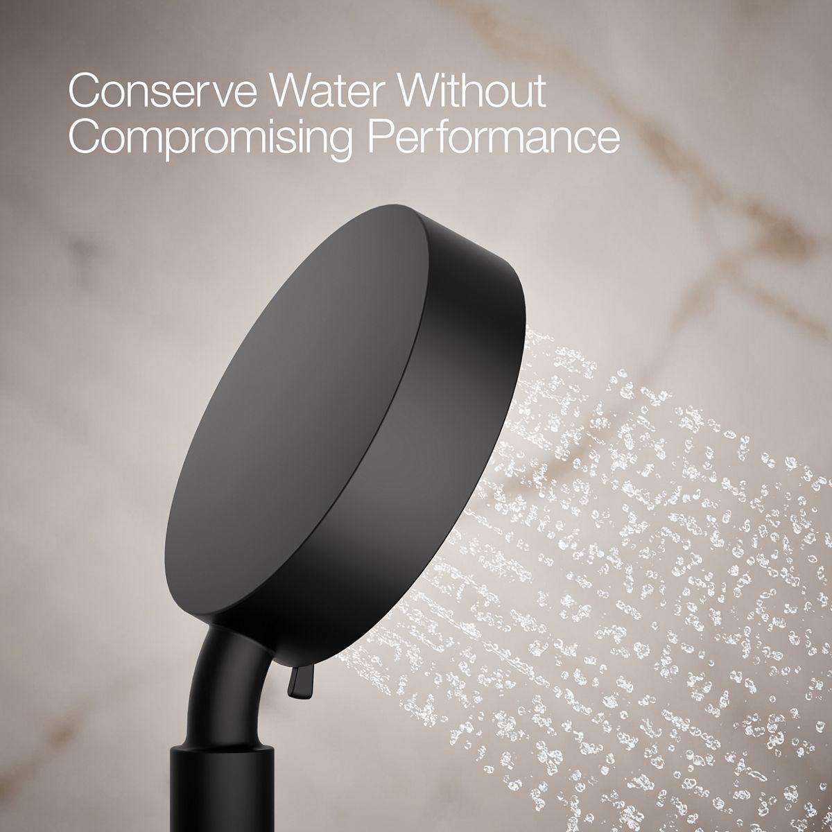 Enjoy luxurious showering combined with up to 30 percent water savings. This Purist 1.75-gpm handshower provides three distinct sprays – full coverage, pulsating massage, or silk spray – all enhanced with Katalyst technology for a completely indulgent showering experience. By infusing two liters of air per minute, Katalyst delivers a powerful, voluptuous spray that clings to the body with larger, fuller water drops.
