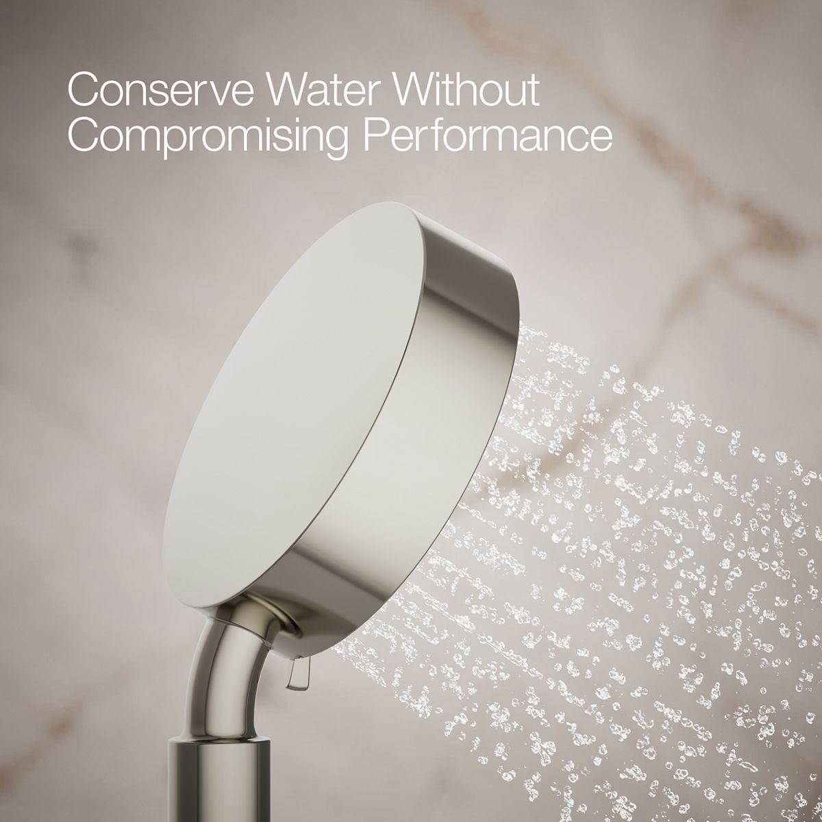 Enjoy luxurious showering combined with up to 30 percent water savings. This Purist 1.75-gpm handshower provides three distinct sprays – full coverage, pulsating massage, or silk spray – all enhanced with Katalyst technology for a completely indulgent showering experience. By infusing two liters of air per minute, Katalyst delivers a powerful, voluptuous spray that clings to the body with larger, fuller water drops.
