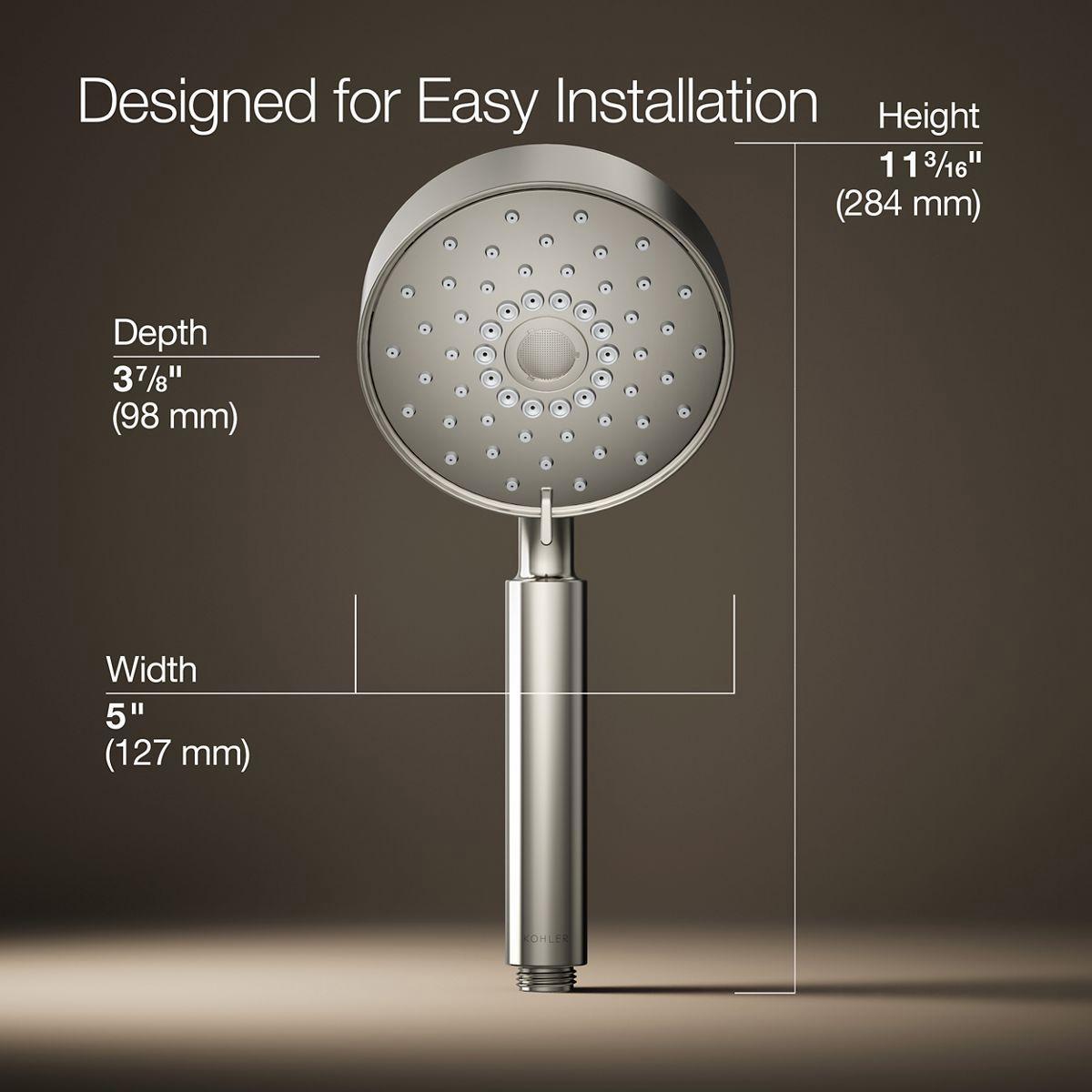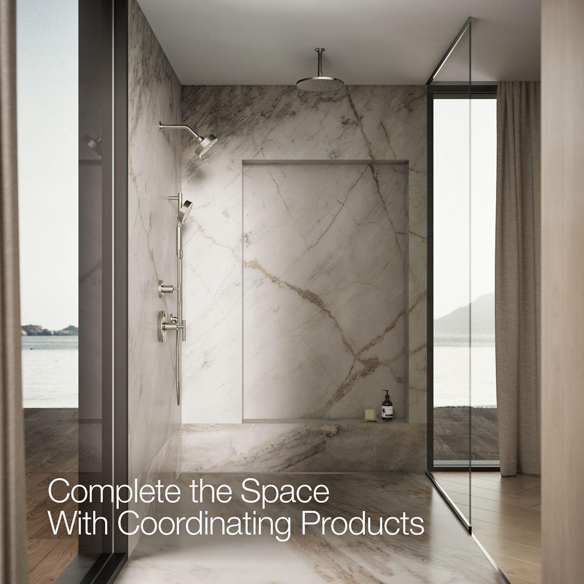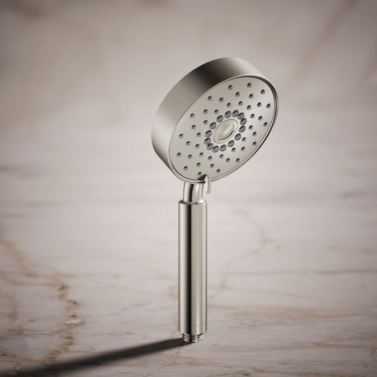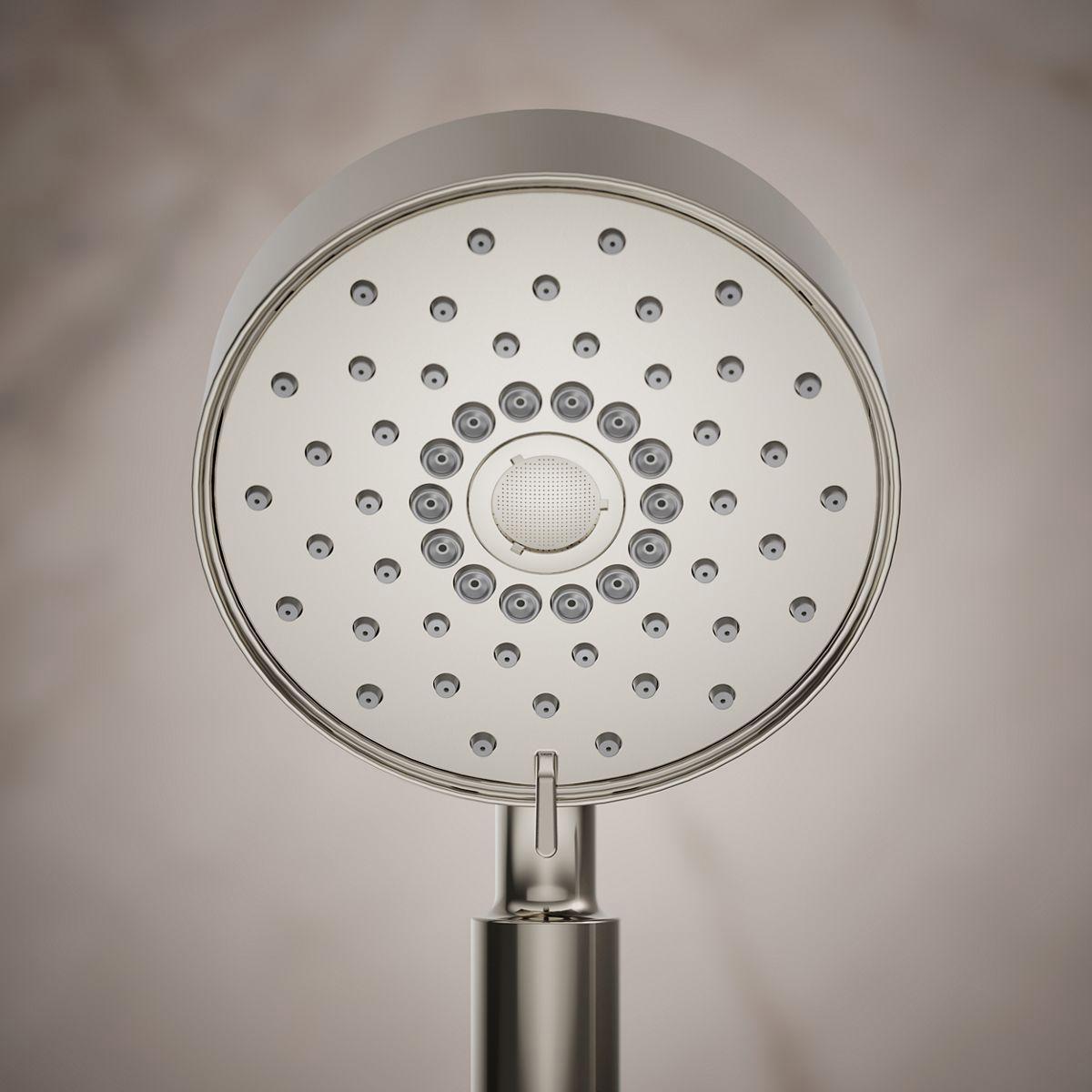 - Multifunction showerhead and handshower each have advanced spray engines to provide three experiences: full coverage, pulsating massage, and silk spray.
