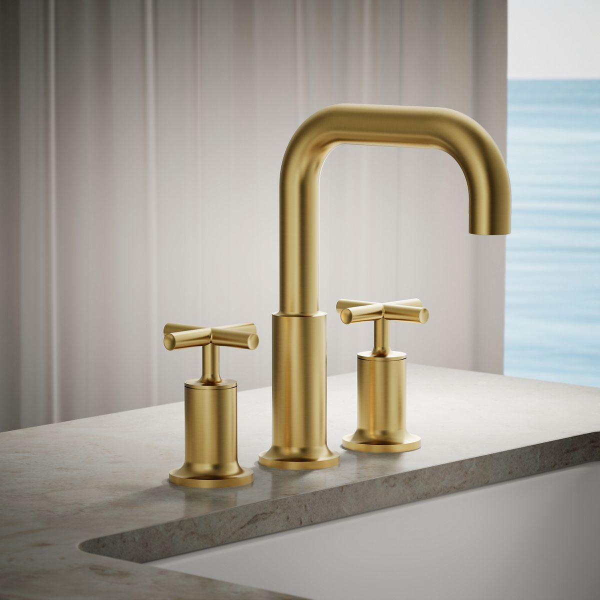 Purist Deck Mount Tub Faucet Trim With Cross Handles - Vibrant Brushed Moderne Brass T14428-3-2MB Kohler