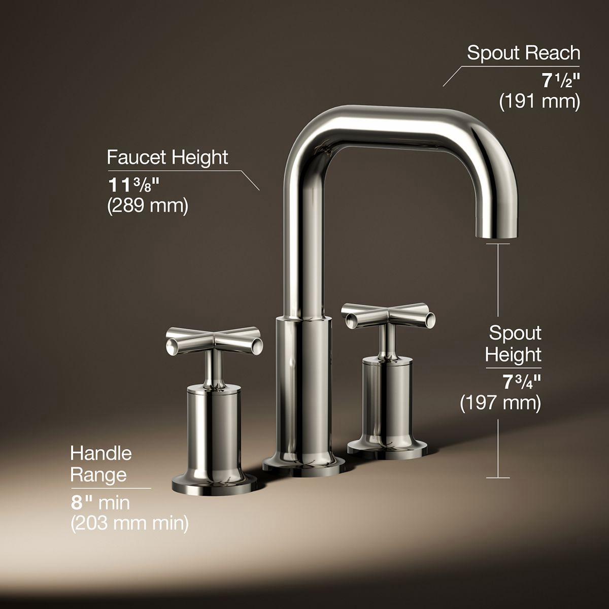 Purist faucets and accessories combine simple, architectural forms with sensual design lines. Featuring this modern, minimalist style, this Purist bath faucet trim includes a spout and ergonomic cross handles that add sophistication to your bath. The two handles allow you to control hot and cold water separately, making it easy to find your desired temperature. Pair this trim with high-flow ceramic disc valves or 1/2-inch ceramic disc valves for optimal performance.