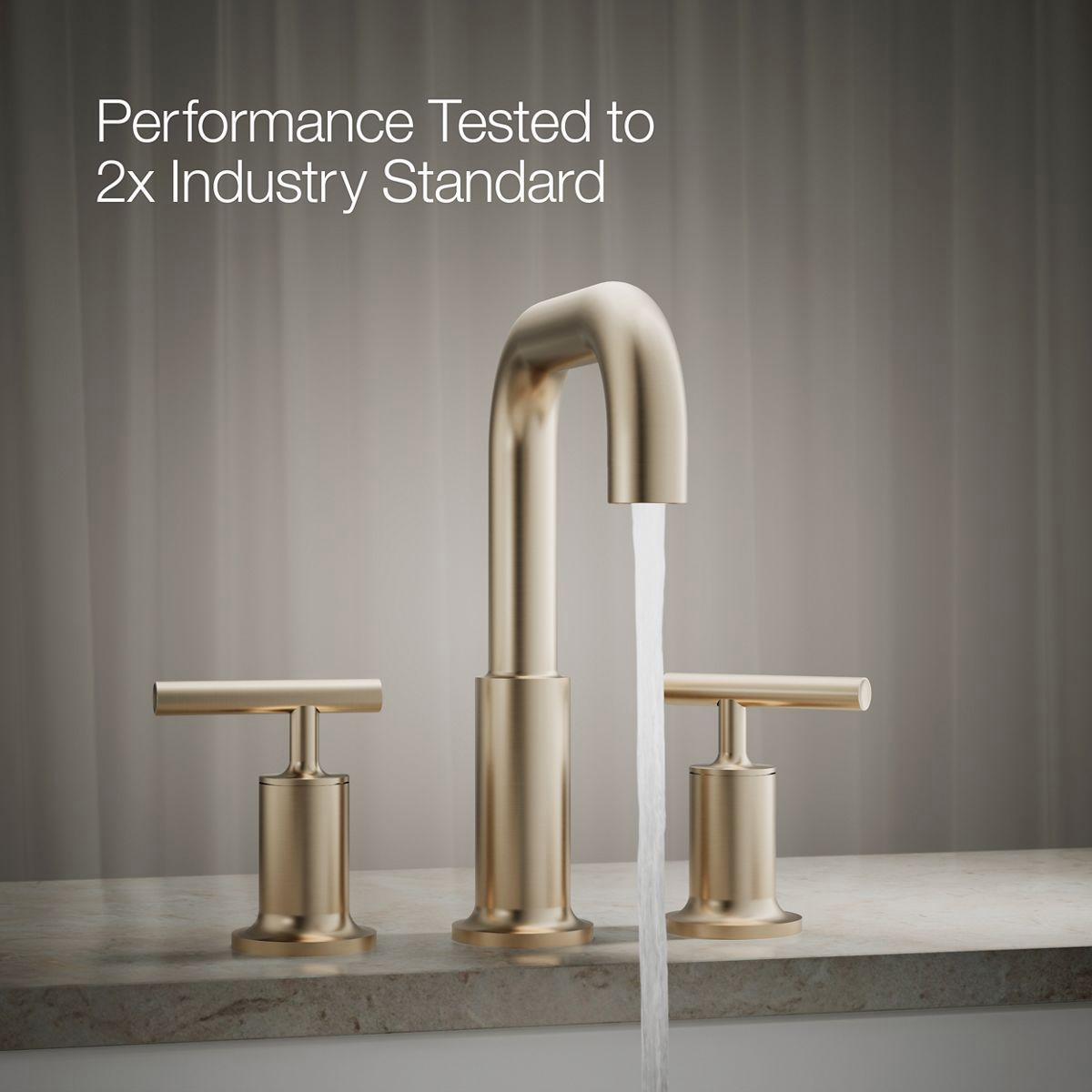Purist faucets and accessories combine simple, architectural forms with sensual design lines. Featuring this modern, minimalist style, this Purist bath faucet trim includes a spout and ergonomic lever handles that add sophistication to your bath. The two handles allow you to control hot and cold water separately, making it easy to find your desired temperature. Pair this trim with high-flow ceramic disc valves for optimal performance.