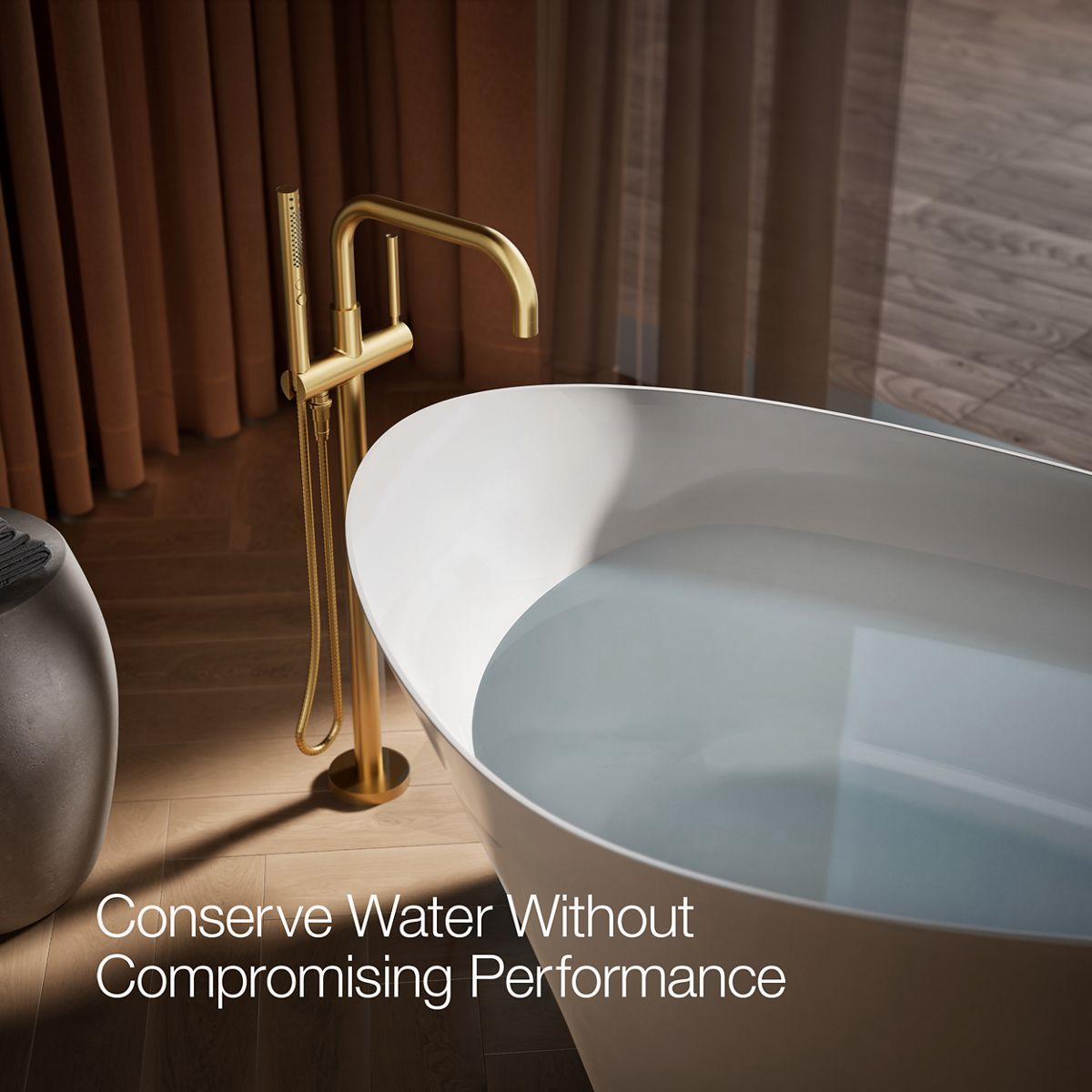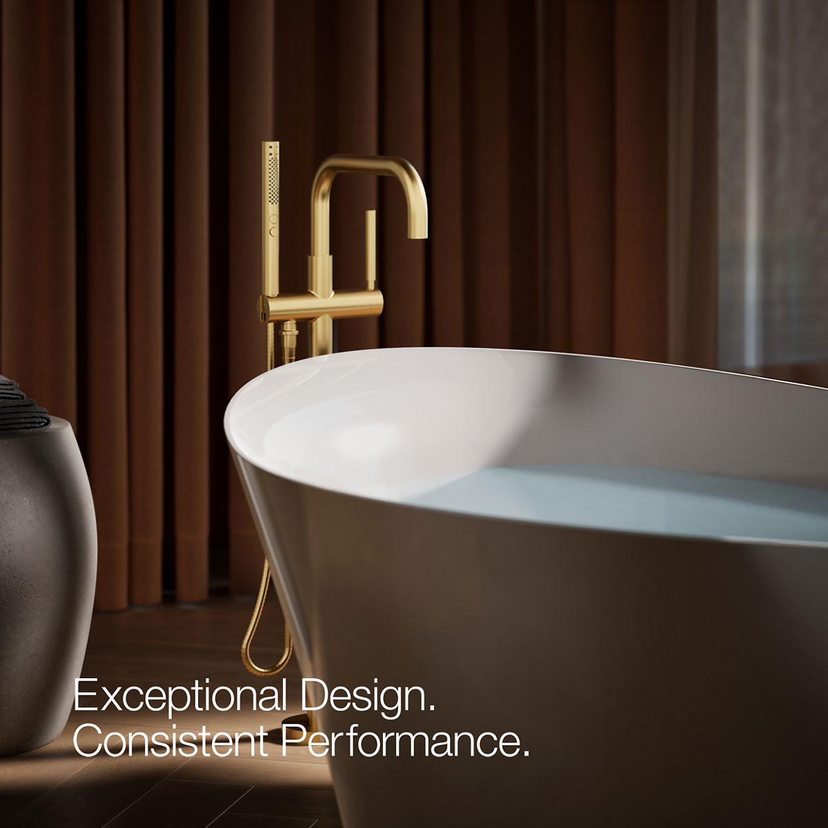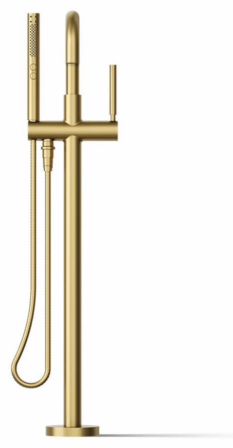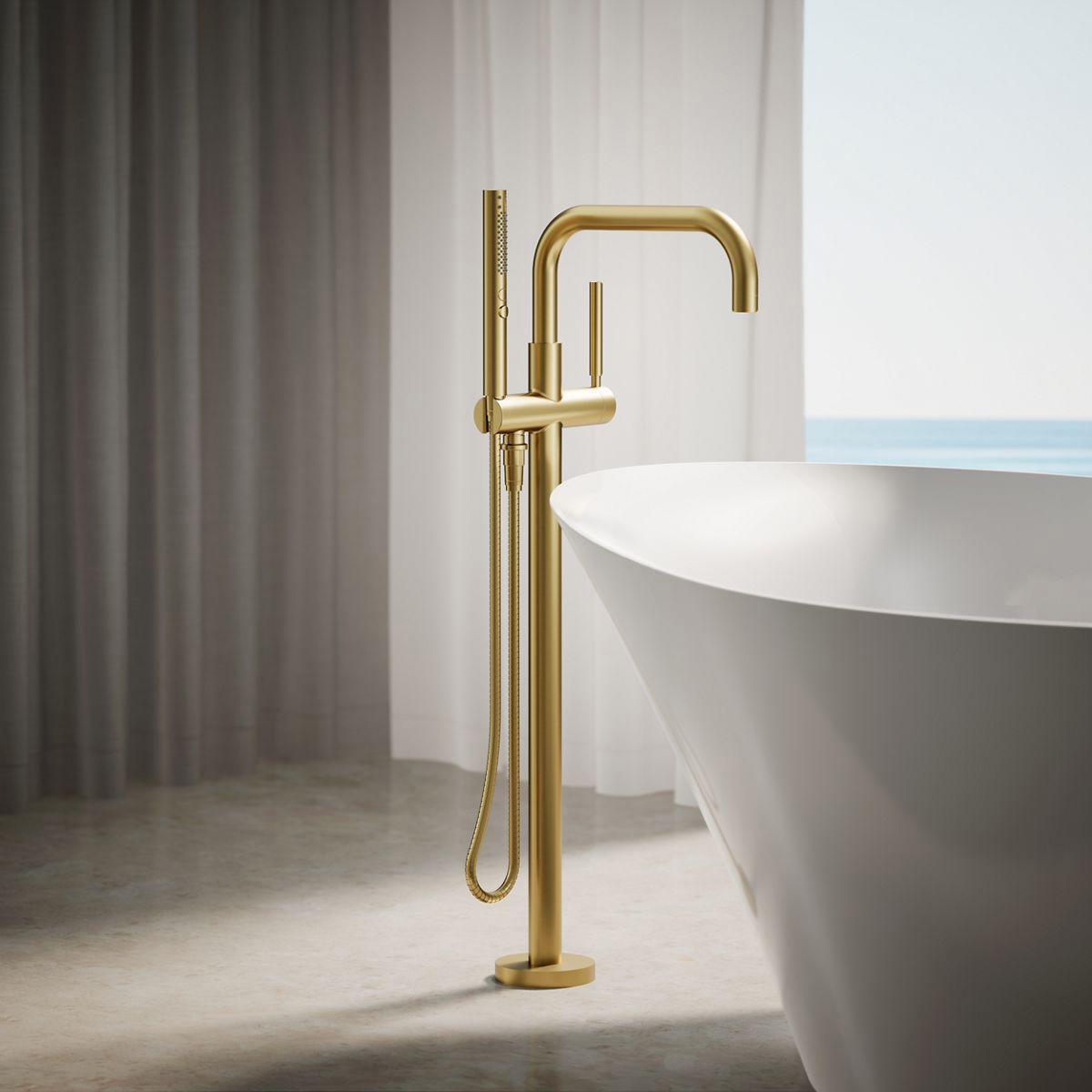 Purist Floor Mount Tub Filler Trim With Hand Shower - Vibrant Brushed Moderne Brass T97328-4-2MB Kohler