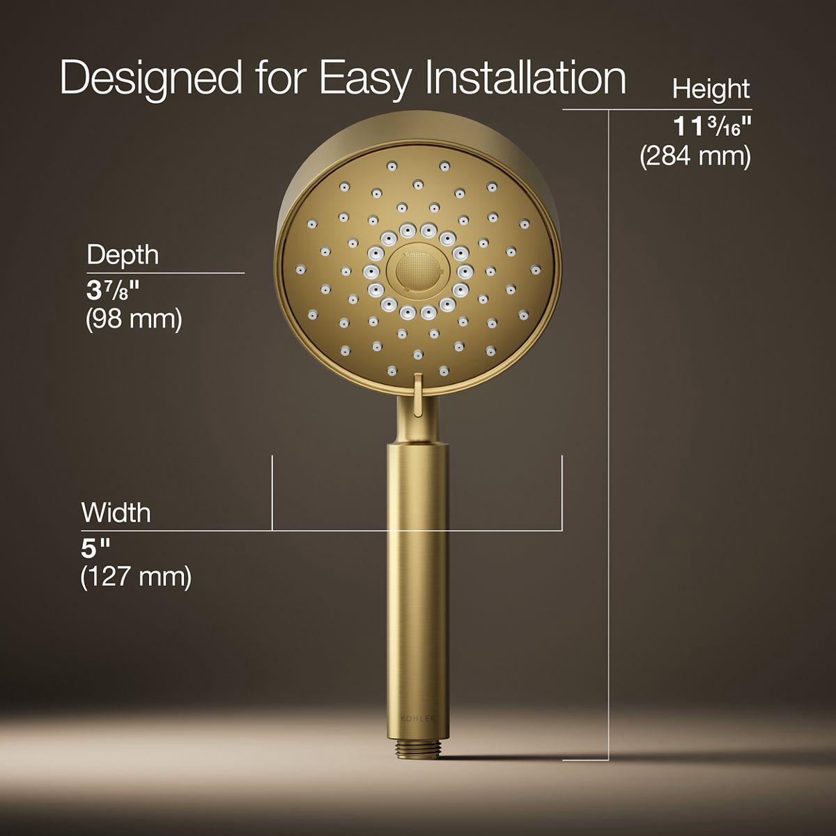 - Multifunction showerhead and handshower each have advanced spray engines to provide three experiences: full coverage, pulsating massage, and silk spray.