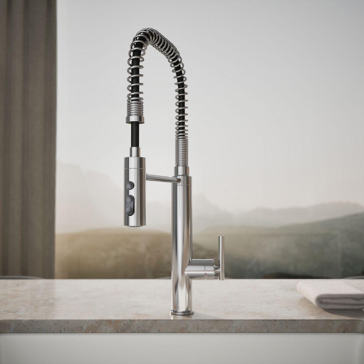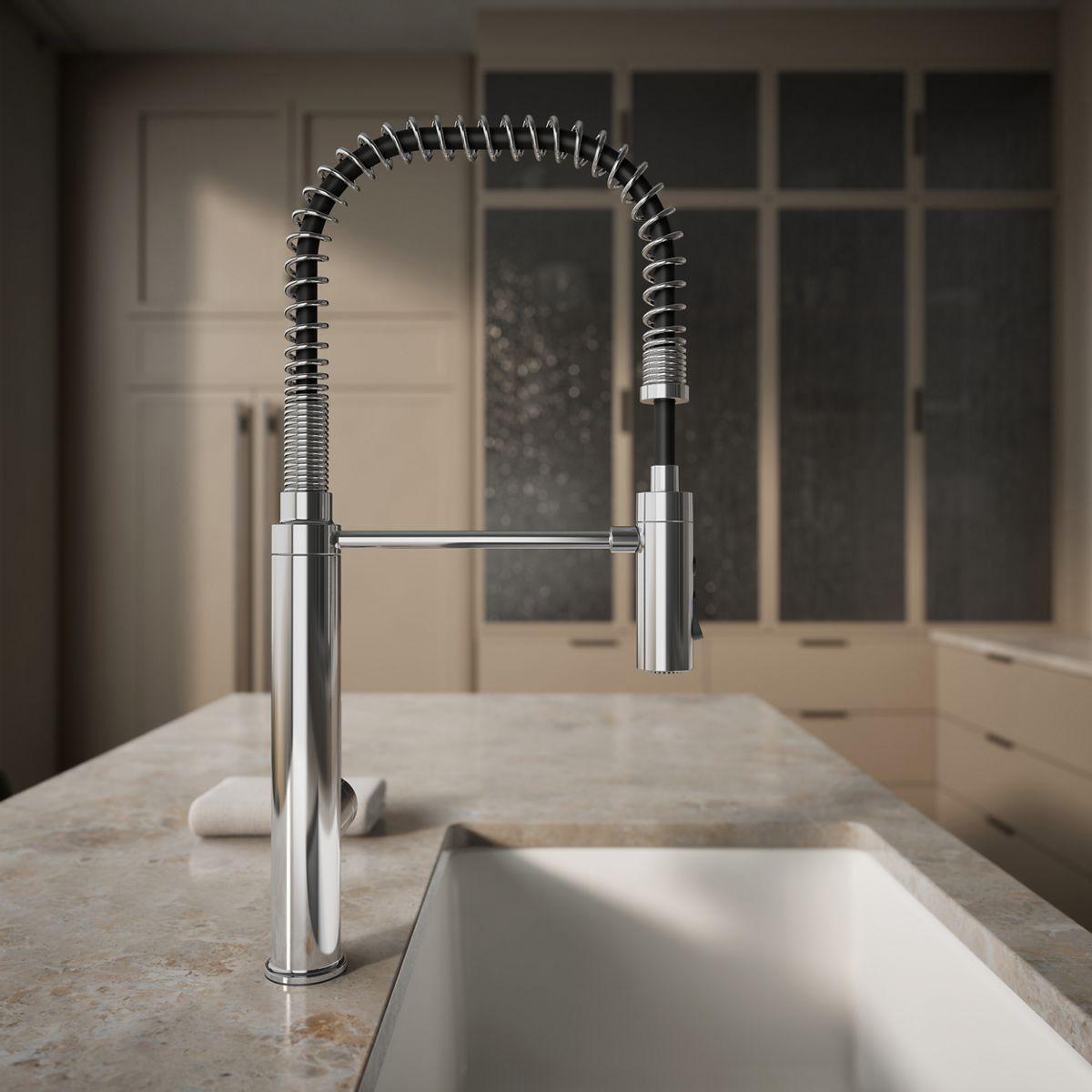 - Professional-style faucet with an easy-to-clean coated hose and removable coil.
