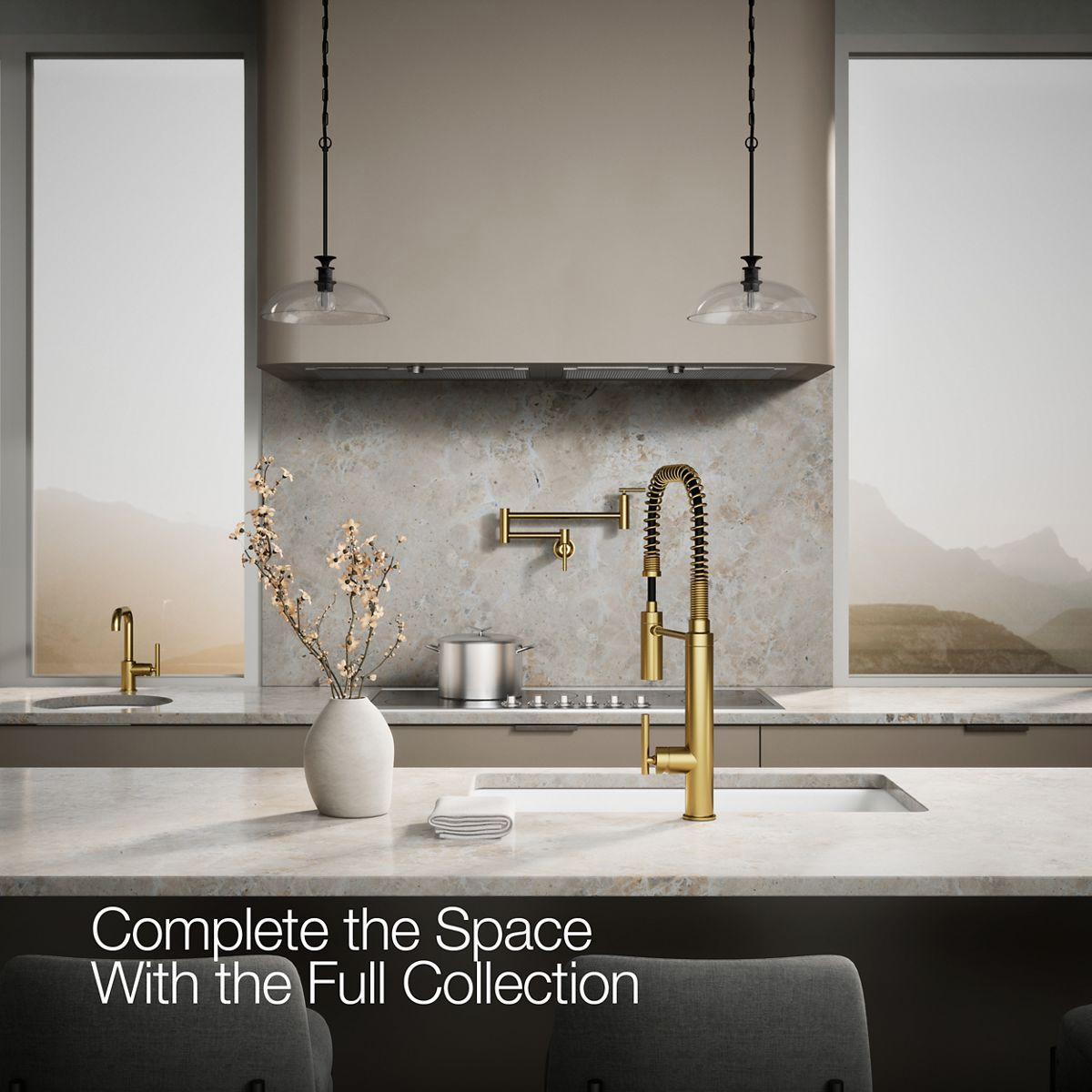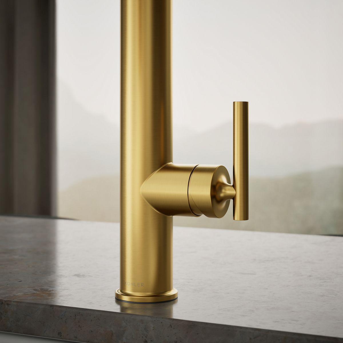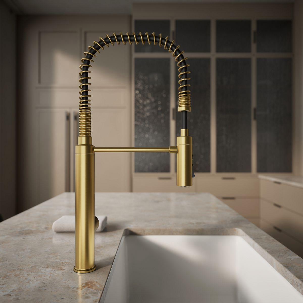 Purist Semi-Professional Kitchen Faucet with Spring Pulldown Spray - Vibrant Brushed Moderne Brass 24982-2MB Kohler