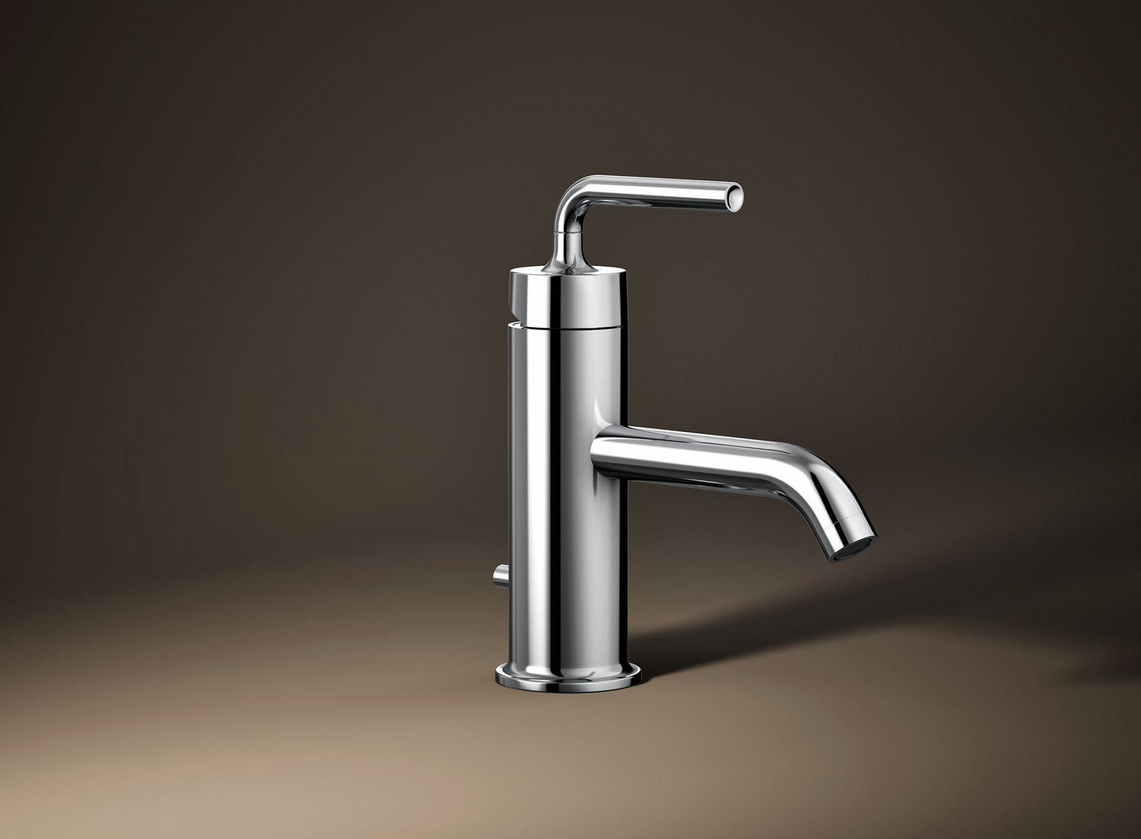 Purist faucets and accessories combine simple, architectural forms with sensual design lines. Featuring this modern, minimalist style, this Purist bathroom sink faucet has a single, straight lever handle.