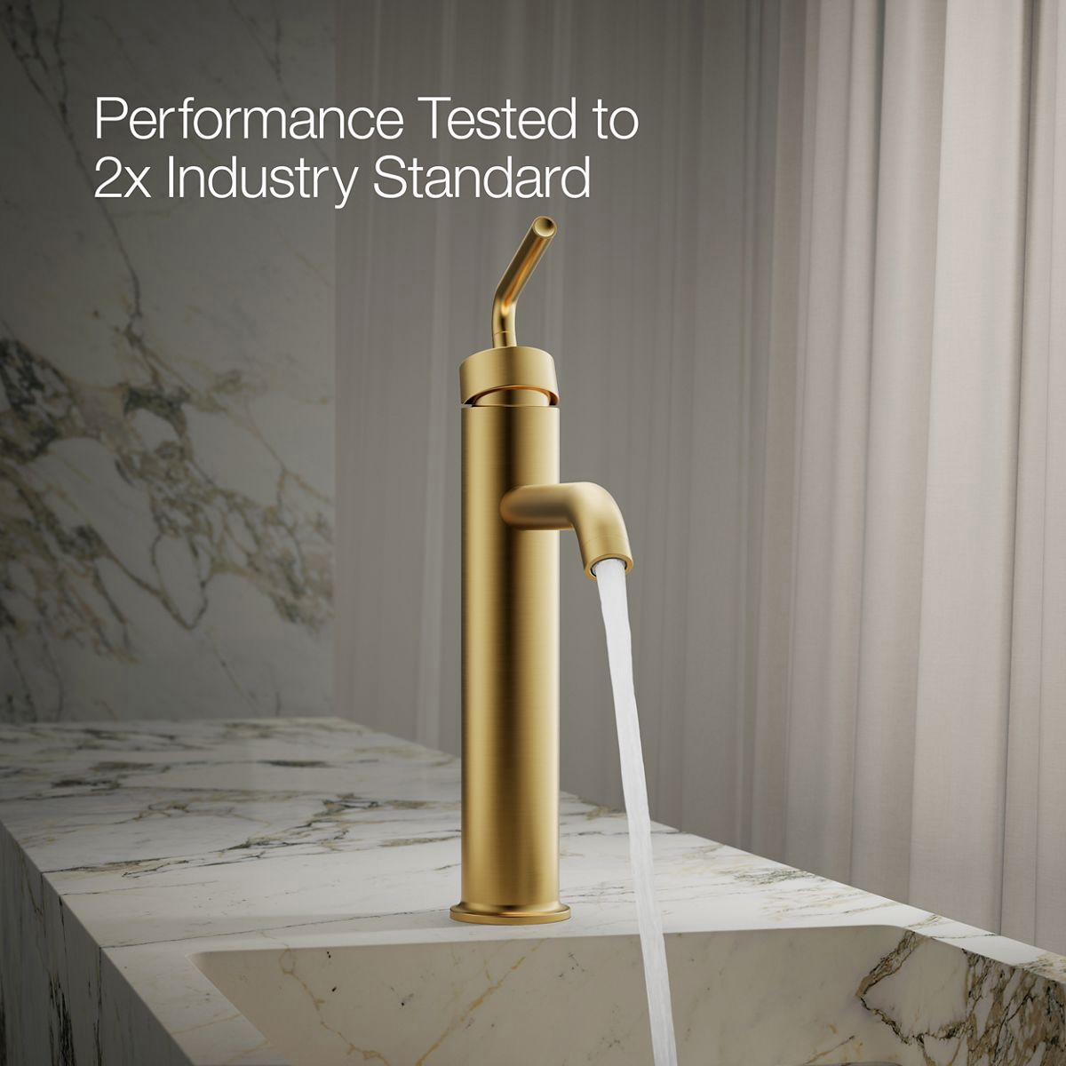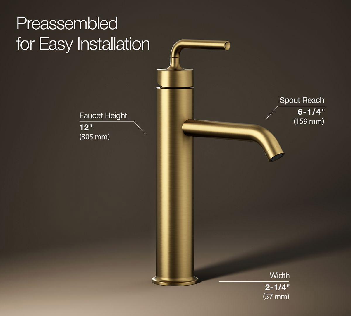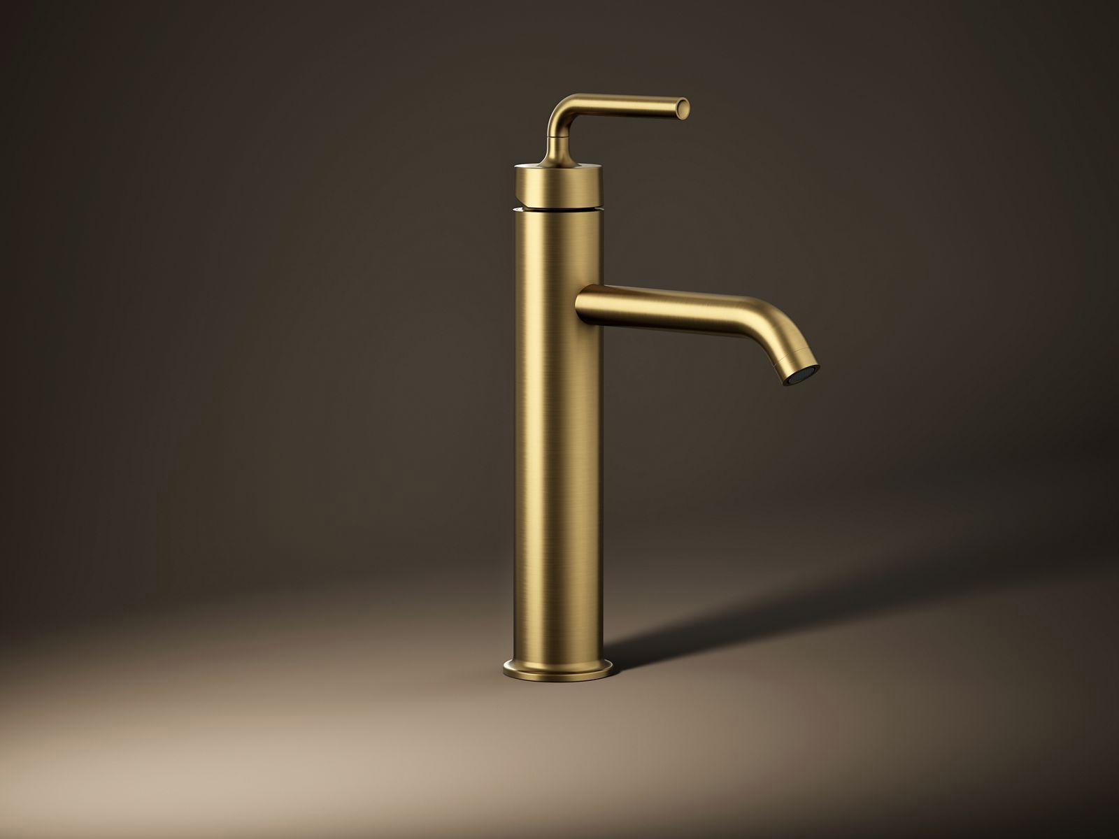 Purist faucets and accessories combine simple, architectural forms with sensual design lines and careful detailing. Capturing the style of minimalist design, this tall bathroom sink faucet features a high spout, ideal for vessel sinks or sinks without faucet holes. The straight, ergonomic lever handle offers easy operation.