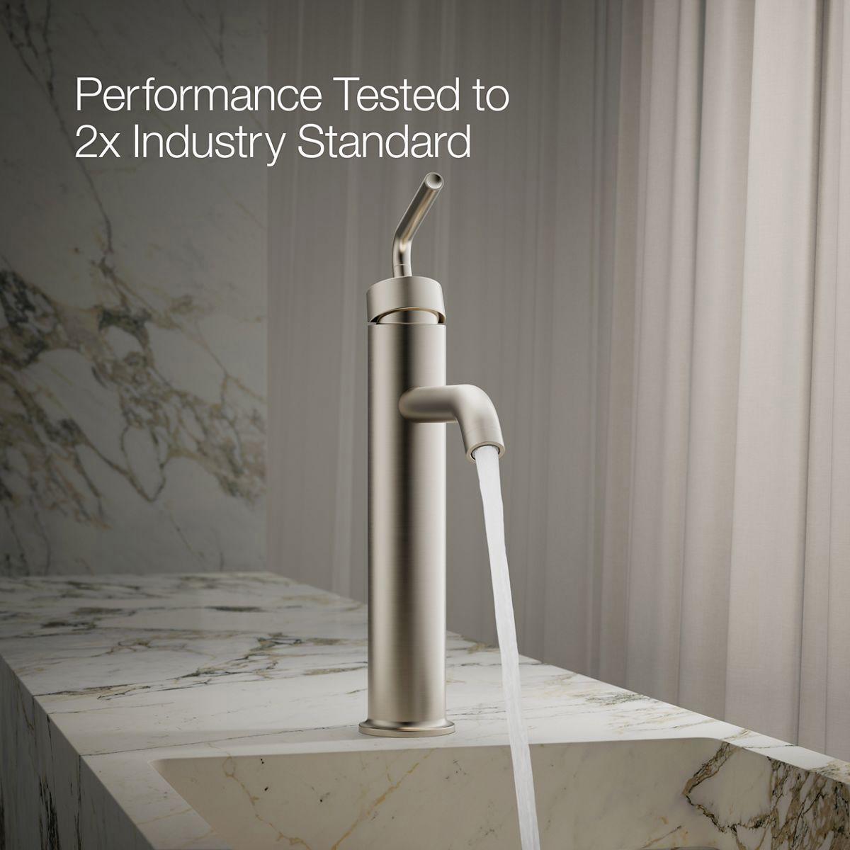 Purist faucets and accessories combine simple, architectural forms with sensual design lines and careful detailing. Capturing the style of minimalist design, this tall bathroom sink faucet features a high spout, ideal for vessel sinks or sinks without faucet holes. The straight, ergonomic lever handle offers easy operation.