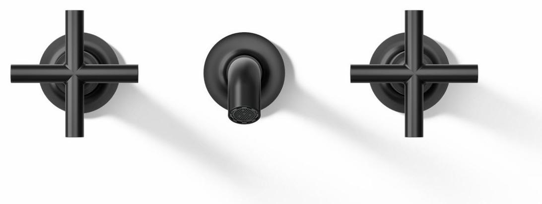 Capturing the style of minimalist design, Purist faucets deliver streamlined water control. This sink faucet trim features a 35-degree angled spout and cross handles for easy operation. The convenient wall-mount design provides a clutter-free countertop in your bath or powder room. When paired with a two-handle ceramic disc valve, this trim offers optimal performance. Combine it with bath accessories from the Purist collection for a distinctively modern and unified decor.