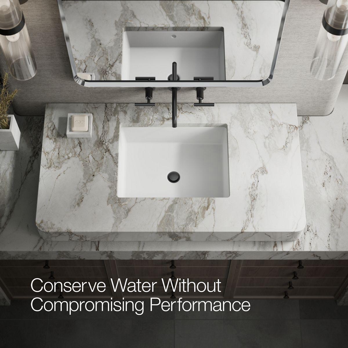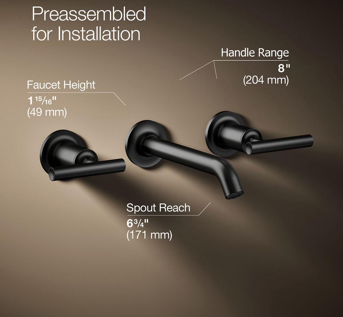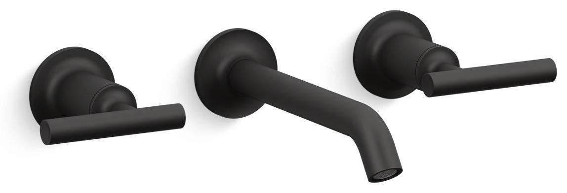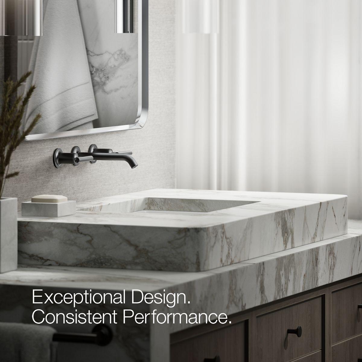 Capturing the style of minimalist design, Purist faucets deliver streamlined water control. This sink faucet trim features a 35-degree angled spout and lever handles for easy operation. The convenient wall-mount design provides a clutter-free countertop in your bath or powder room. When paired with a two-handle ceramic disc valve, this trim offers optimal performance.