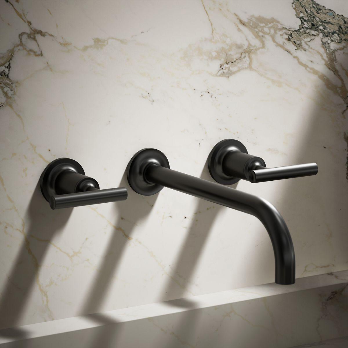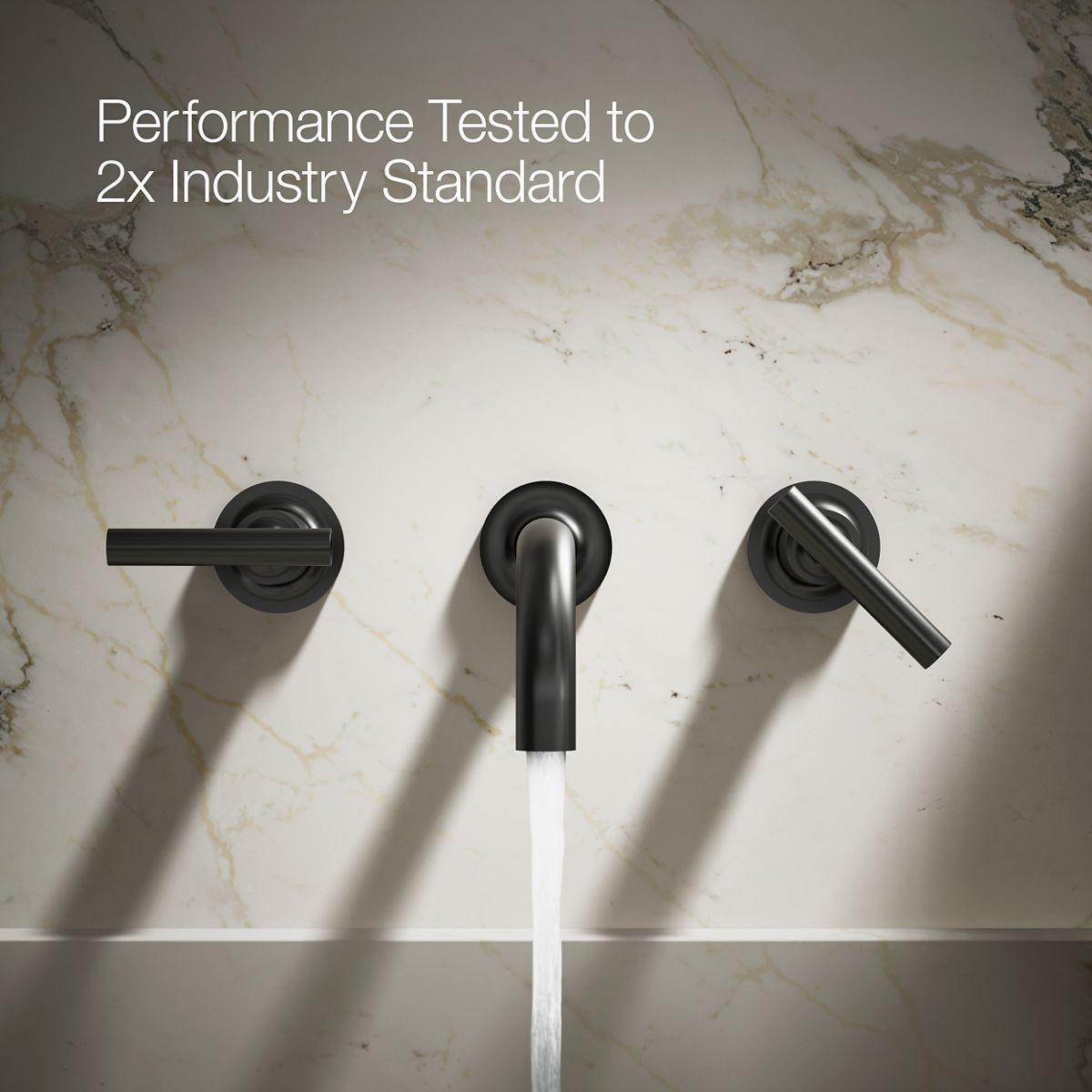 Capturing the style of minimalist design, Purist faucets deliver streamlined water control. This sink faucet trim features a 90-degree angle spout and lever handles for easy operation. The convenient wall-mount design provides a clutter-free countertop in your bath or powder room. When paired with a two-handle ceramic disc valve, this trim offers optimal performance. Combine it with bath accessories from the Purist collection for a distinctively modern and unified decor.