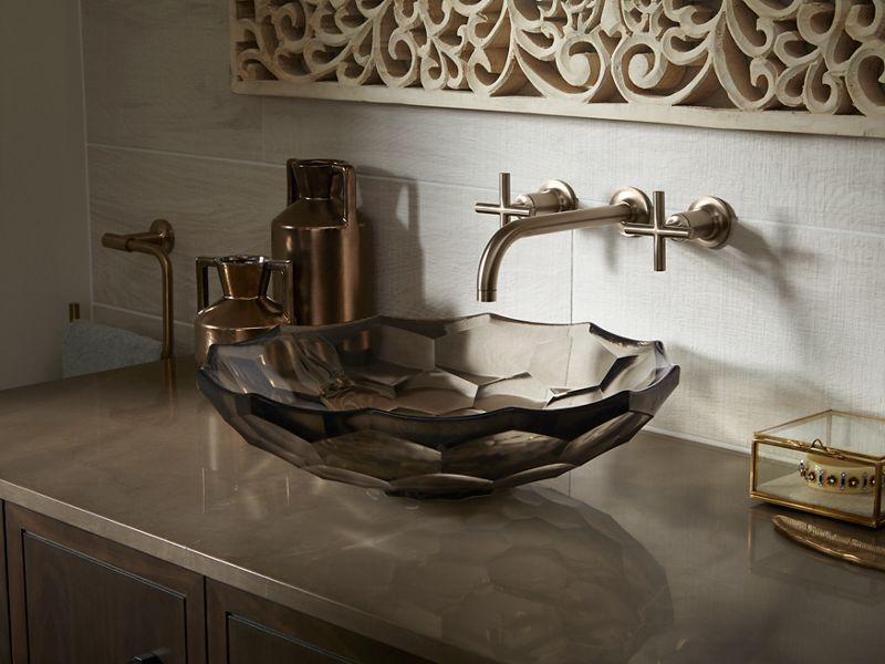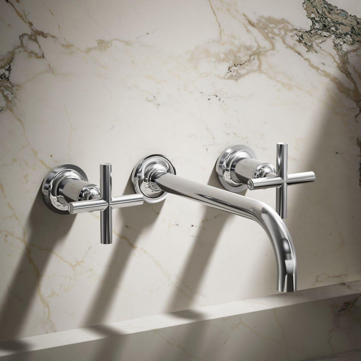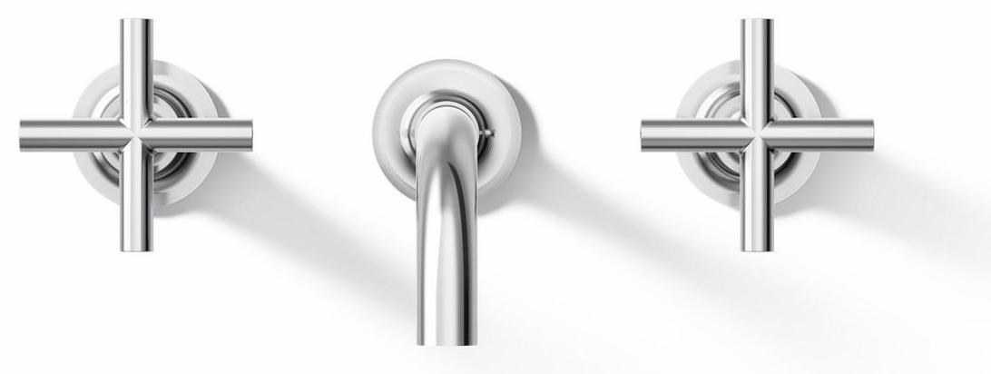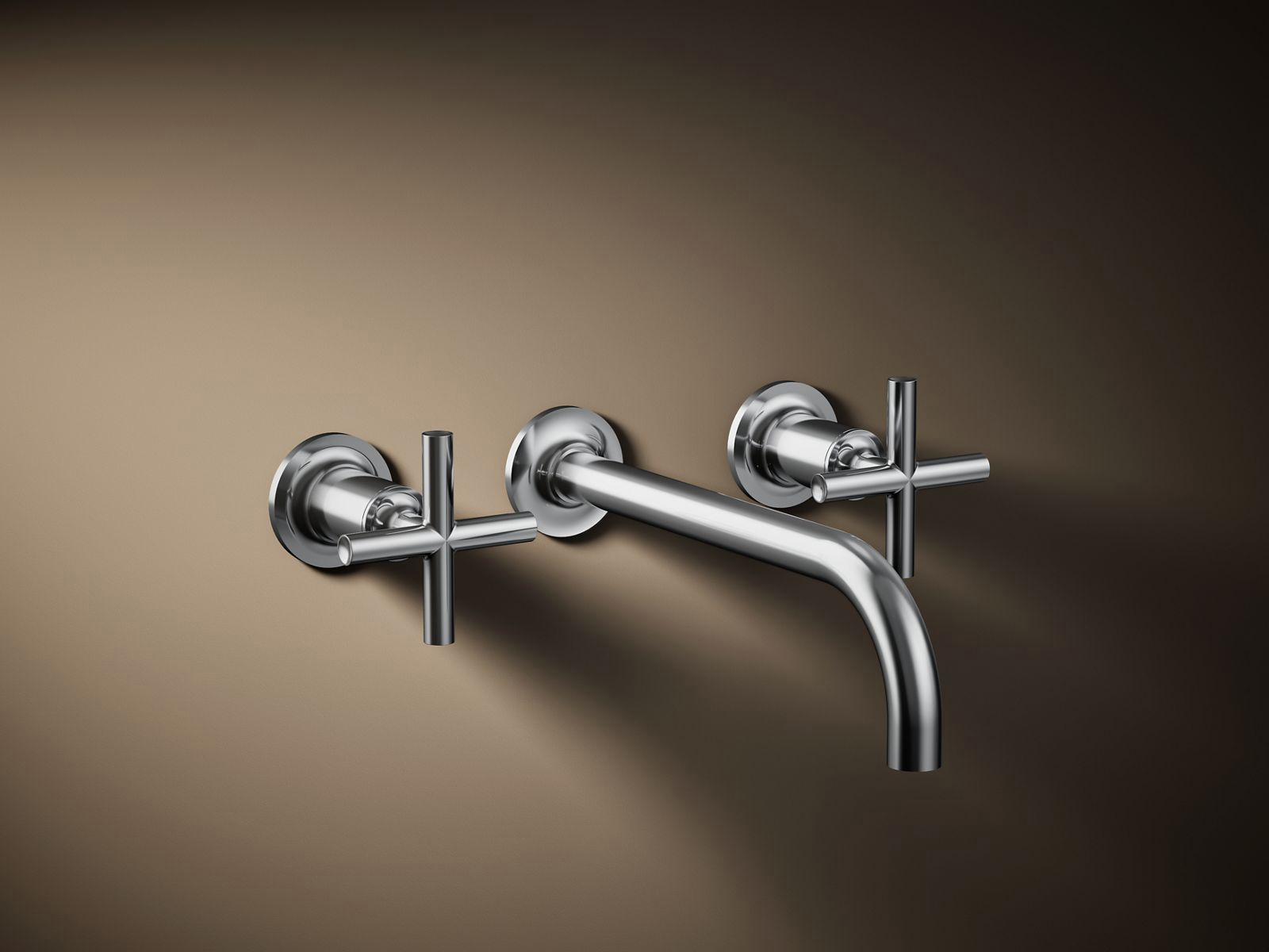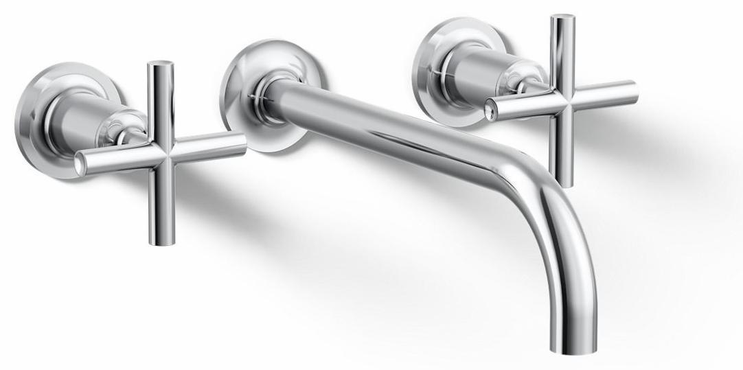 Capturing the style of minimalist design, Purist faucets deliver streamlined water control. This sink faucet trim features a 90-degree angled spout and cross handles for easy operation. The convenient wall-mount design provides a clutter-free countertop in your bath or powder room. When paired with two-handle ceramic disc valves, this trim offers optimal performance.