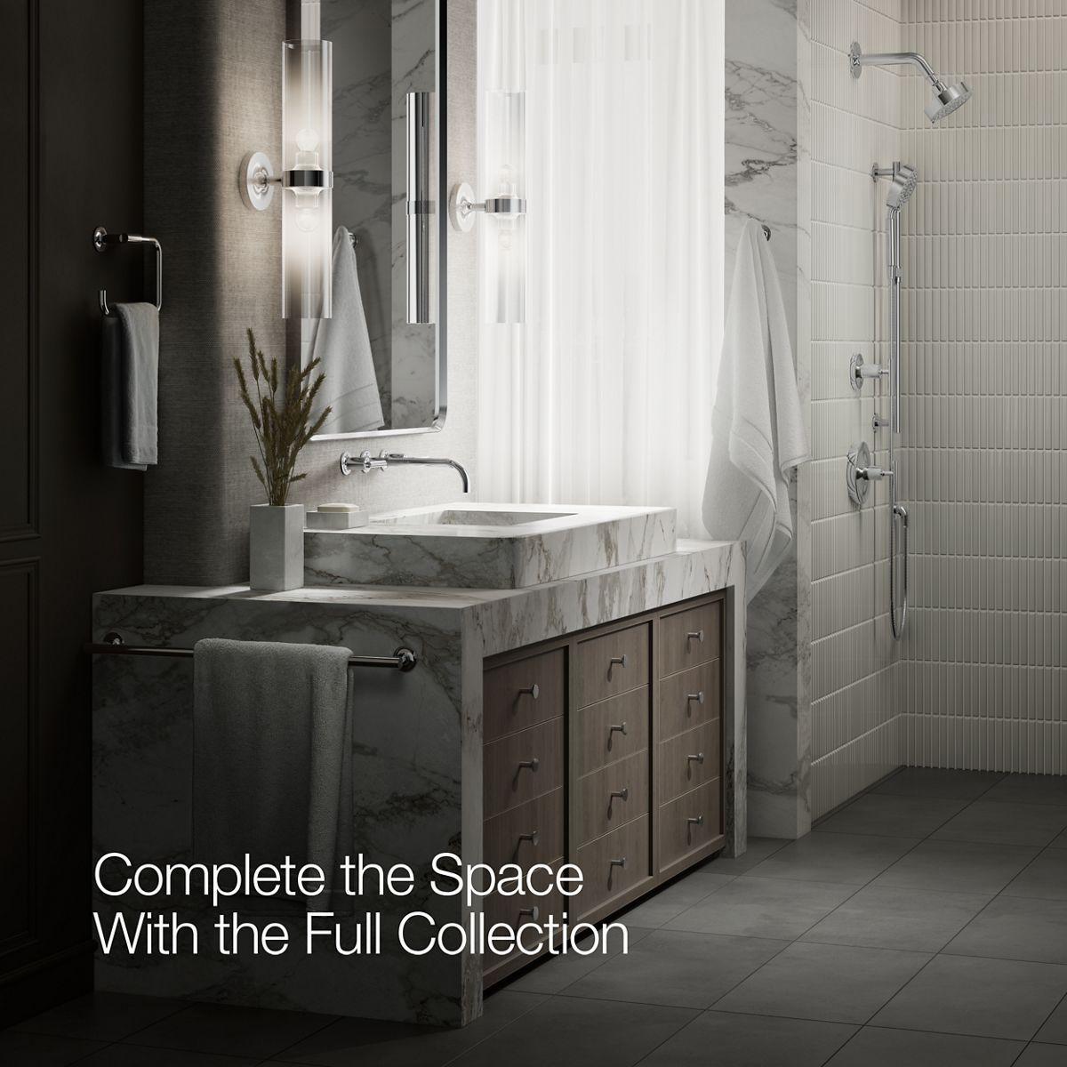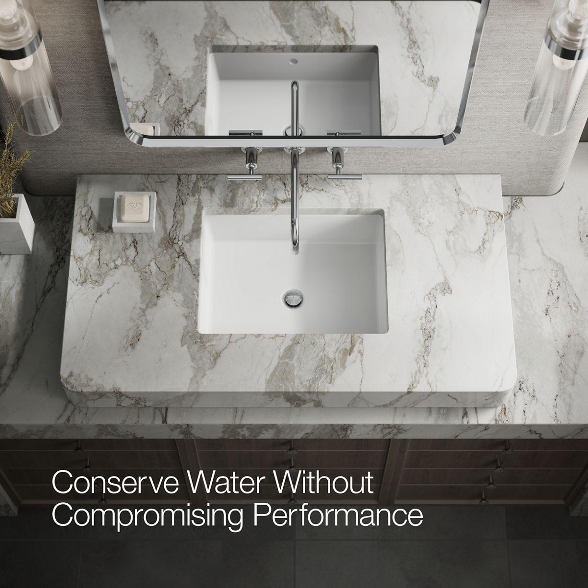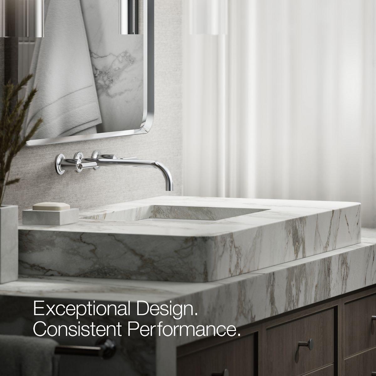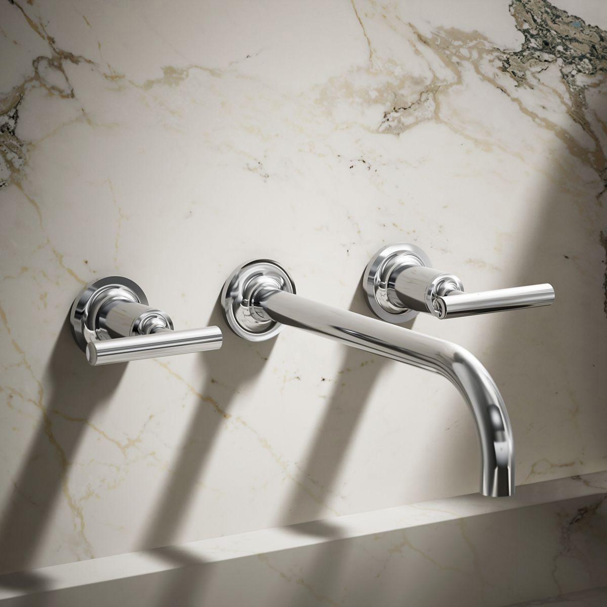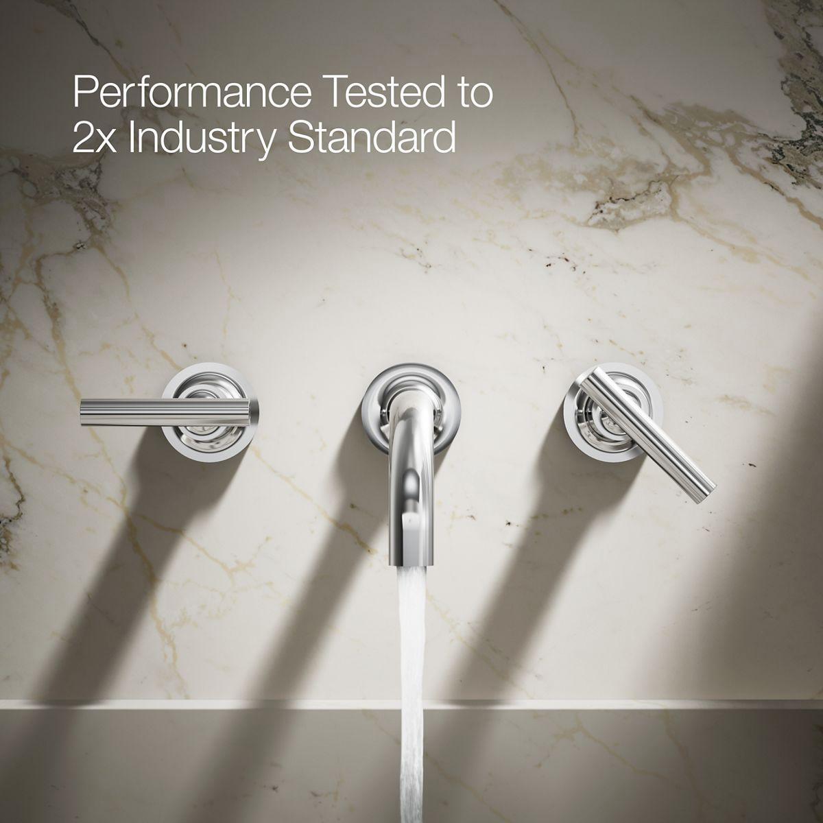 Capturing the style of minimalist design, Purist faucets deliver streamlined water control. This sink faucet trim features a 90-degree angle spout and lever handles for easy operation. The convenient wall-mount design provides a clutter-free countertop in your bath or powder room. When paired with a two-handle ceramic disc valve, this trim offers optimal performance. Combine it with bath accessories from the Purist collection for a distinctively modern and unified decor.
