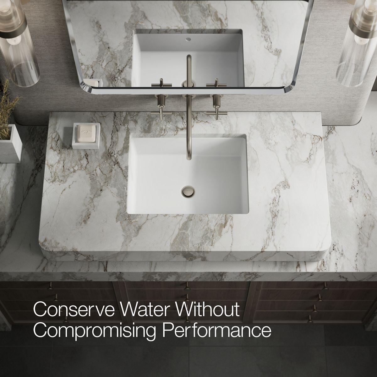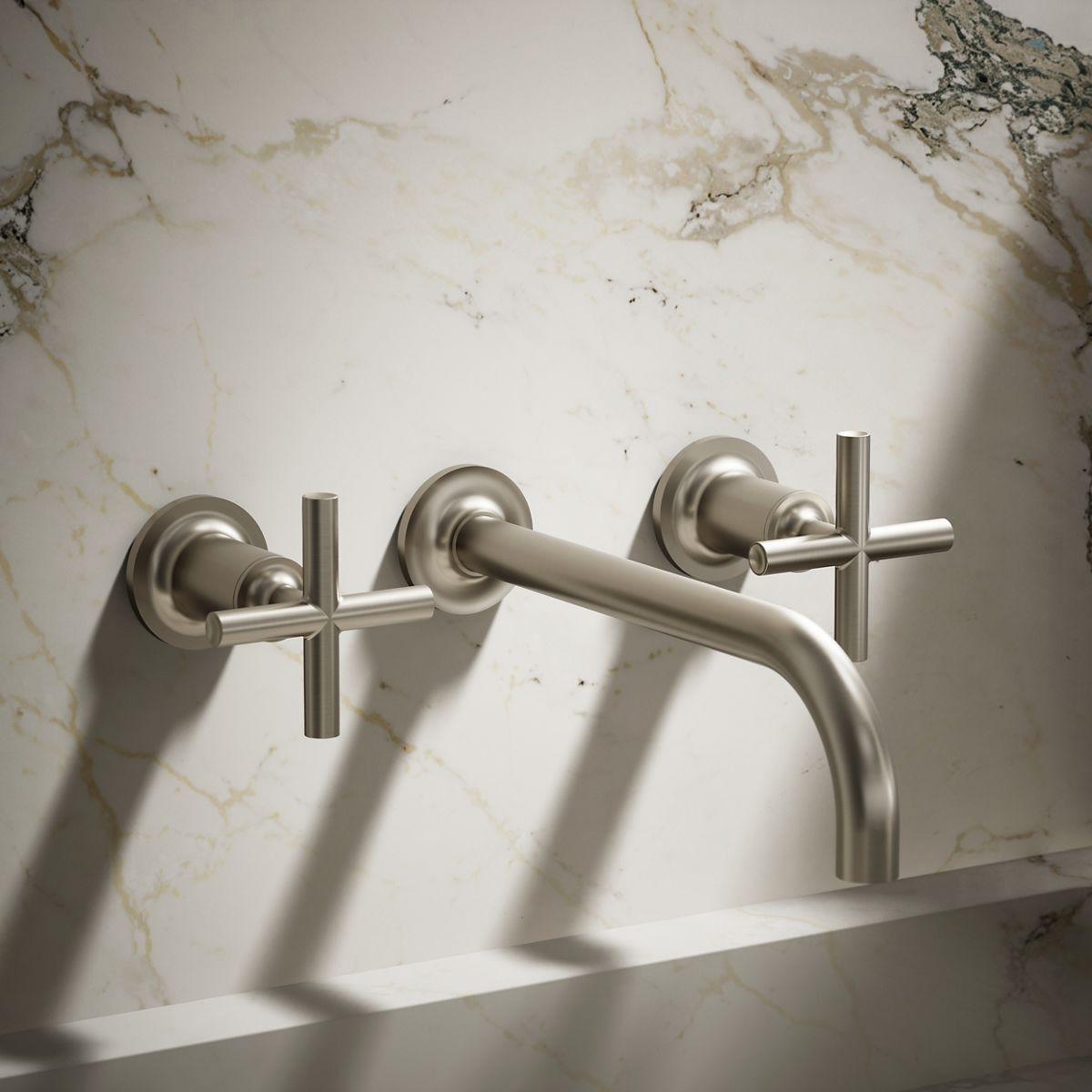 Capturing the style of minimalist design, Purist faucets deliver streamlined water control. This sink faucet trim features a 90-degree angled spout and cross handles for easy operation. The convenient wall-mount design provides a clutter-free countertop in your bath or powder room. When paired with two-handle ceramic disc valves, this trim offers optimal performance.