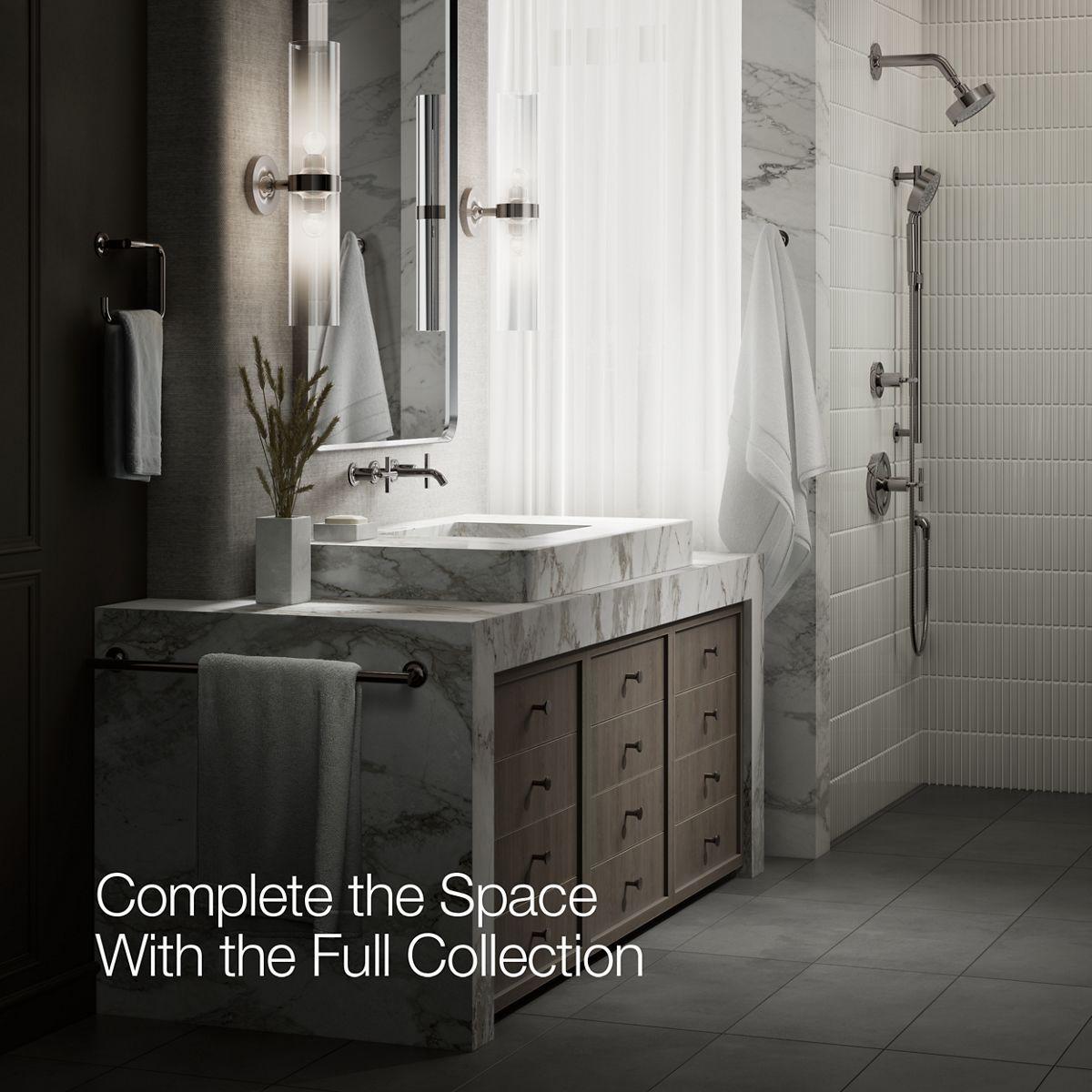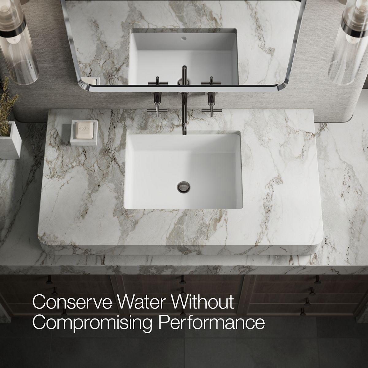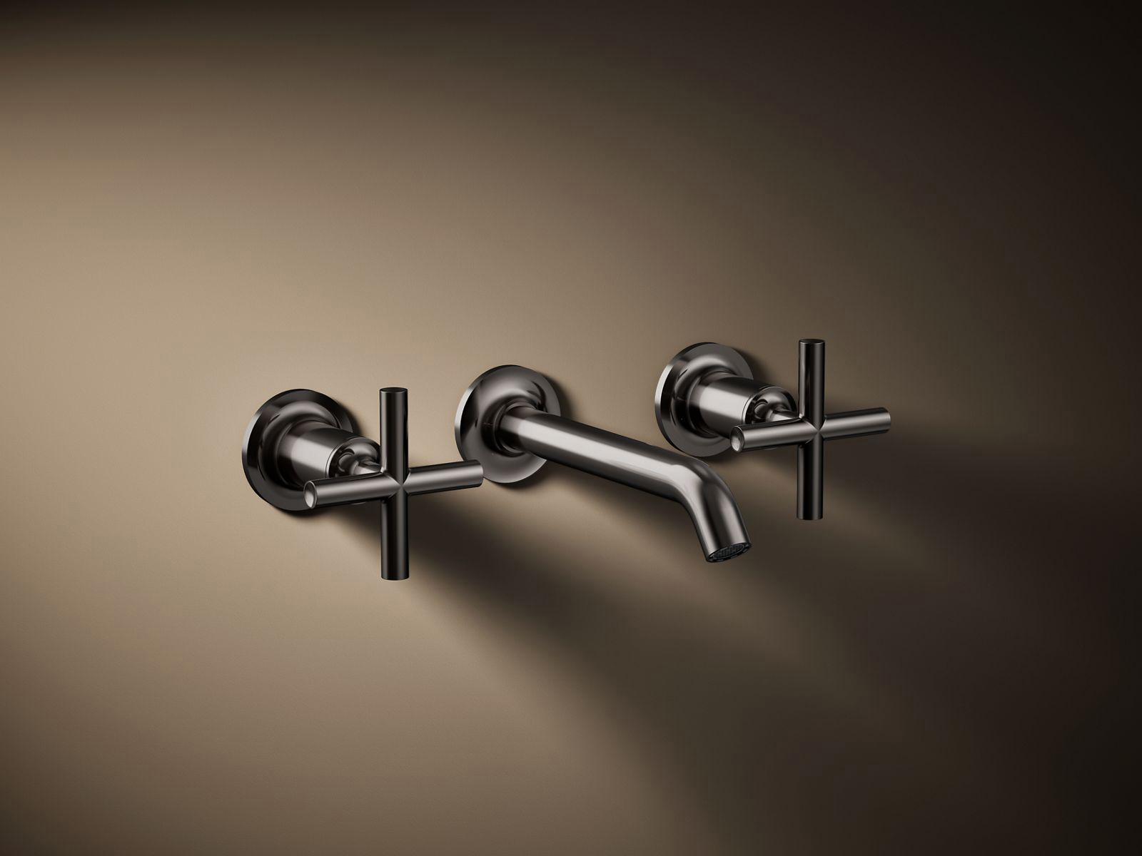 Capturing the style of minimalist design, Purist faucets deliver streamlined water control. This sink faucet trim features a 35-degree angled spout and cross handles for easy operation. The convenient wall-mount design provides a clutter-free countertop in your bath or powder room. When paired with a two-handle ceramic disc valve, this trim offers optimal performance. Combine it with bath accessories from the Purist collection for a distinctively modern and unified decor.