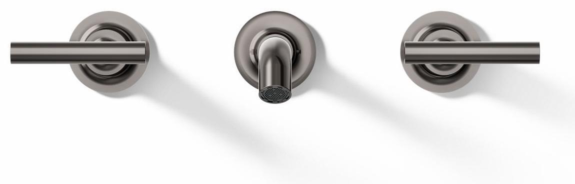 Capturing the style of minimalist design, Purist faucets deliver streamlined water control. This sink faucet trim features a 35-degree angled spout and lever handles for easy operation. The convenient wall-mount design provides a clutter-free countertop in your bath or powder room. When paired with a two-handle ceramic disc valve, this trim offers optimal performance.