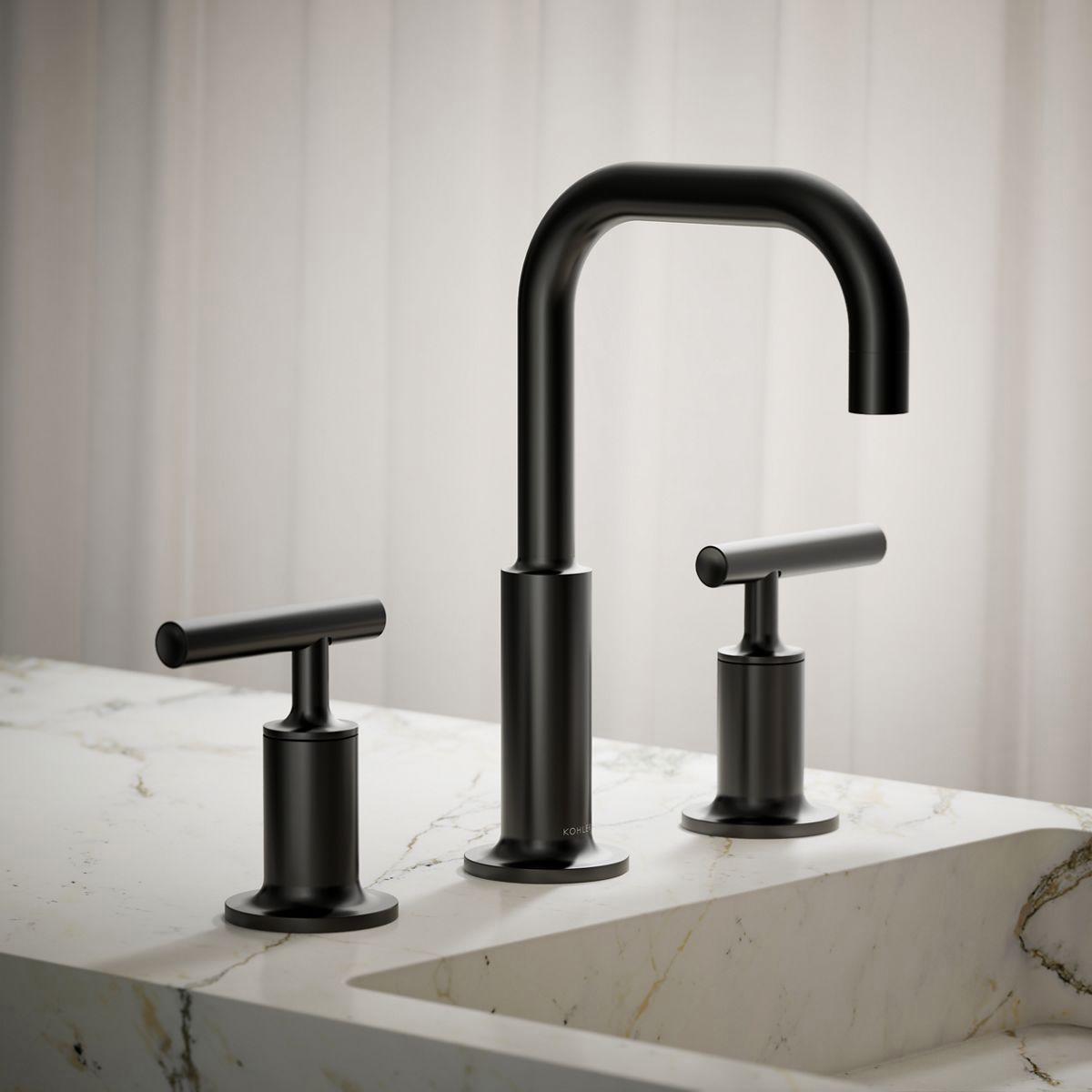Combining architectural forms with sensual design lines, Purist faucets and accessories bring a touch of modern elegance to your bathroom. This sink faucet exemplifies the Purist collection's understated style, with its low gooseneck spout and lever handles. Easy-to-install and leak-free UltraGlide(TM) valves provide reliable performance and durability. And the spout features laminar flow, which helps conserve water while preventing splashing.