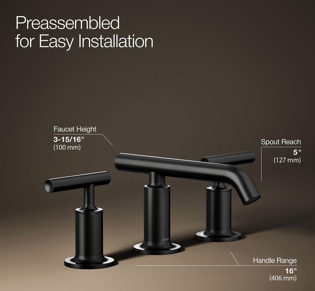 Combining architectural forms with sensual lines, Purist faucets and accessories bring a touch of modern elegance to your bathroom. This sink faucet exemplifies the Purist collection's understated style, with its low spout and lever handles. Easy-to-install and leak-free UltraGlide(TM) valves provide reliable performance and durability. And the spout features laminar flow, which helps conserve water while preventing splashing.