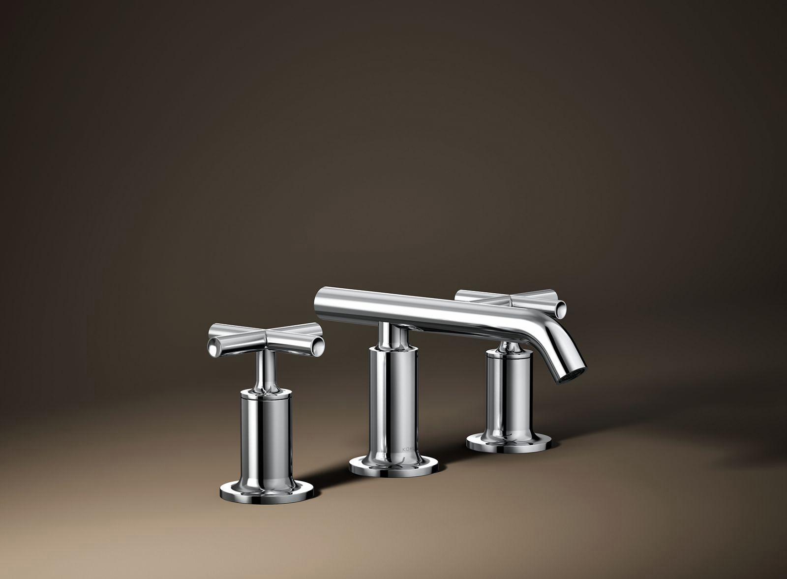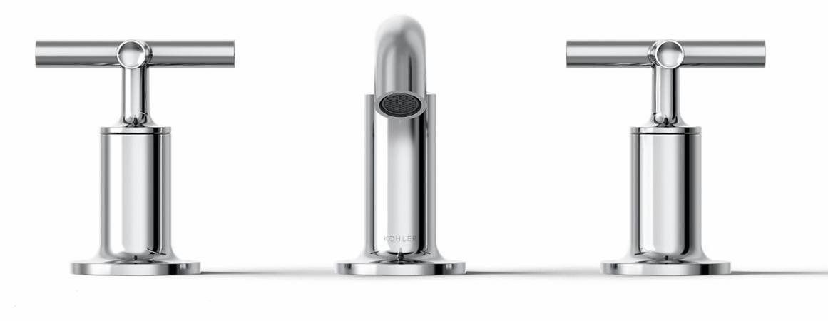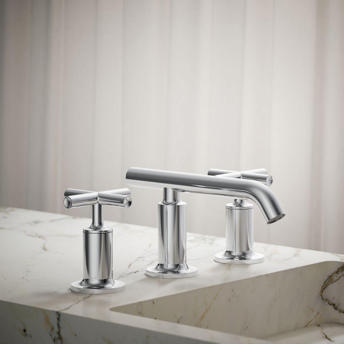 Combining architectural forms with sensual design lines, Purist faucets and accessories bring a touch of modern elegance to your bathroom. This sink faucet exemplifies the Purist collection's understated style, with its low spout and cross handles. Easy-to-install and leak-free UltraGlide(TM) valves provide reliable performance and durability. And the spout features laminar flow, which helps conserve water while preventing splashing.
