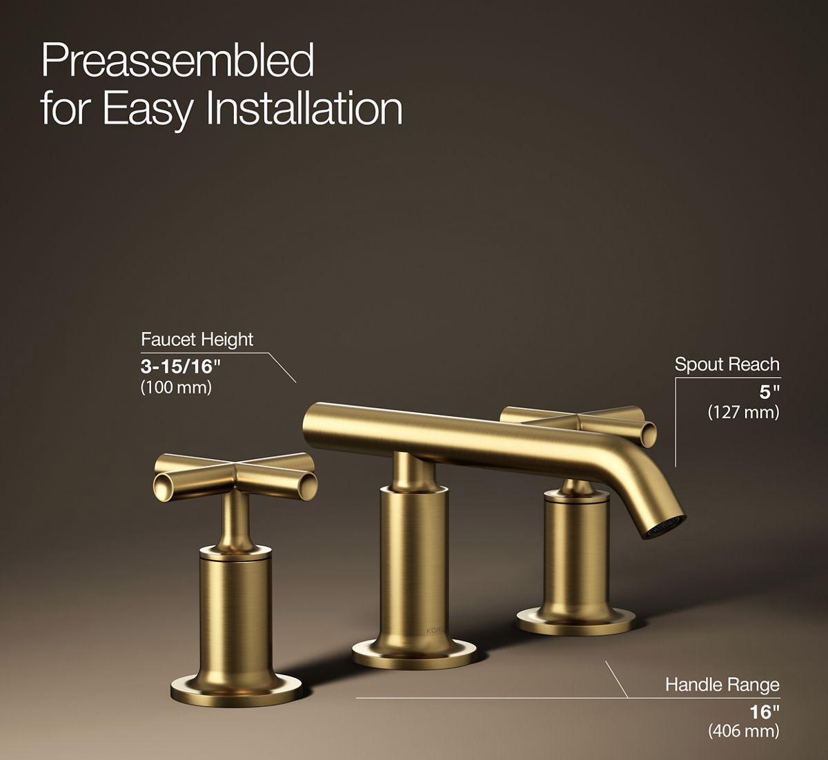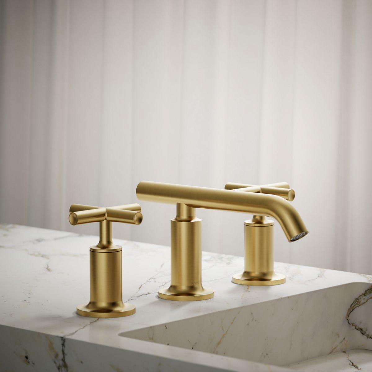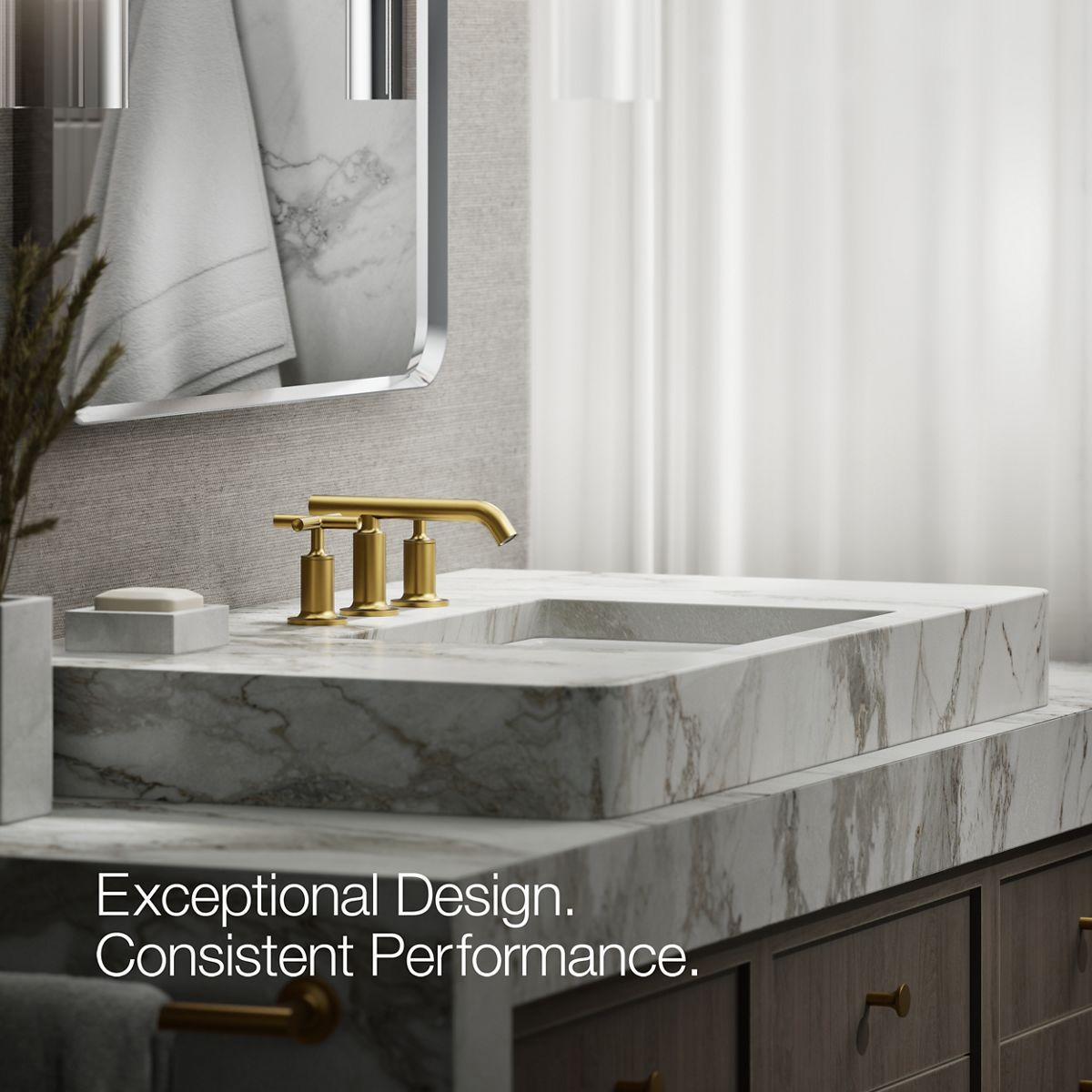 Combining architectural forms with sensual design lines, Purist faucets and accessories bring a touch of modern elegance to your bathroom. This sink faucet exemplifies the Purist collection's understated style, with its low spout and cross handles. Easy-to-install and leak-free UltraGlide(TM) valves provide reliable performance and durability. And the spout features laminar flow, which helps conserve water while preventing splashing.