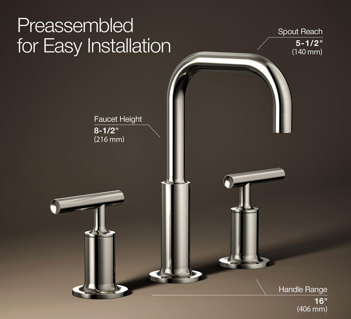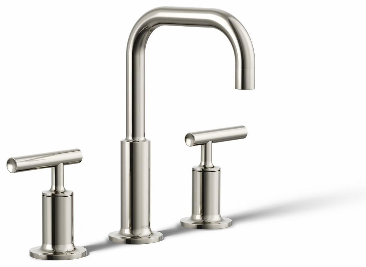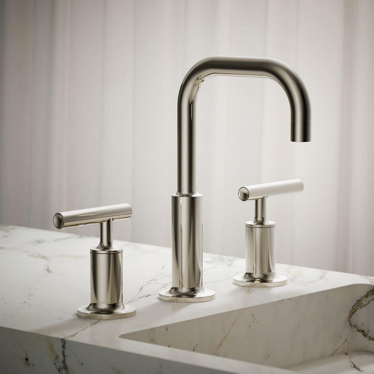 Combining architectural forms with sensual design lines, Purist faucets and accessories bring a touch of modern elegance to your bathroom. This sink faucet exemplifies the Purist collection's understated style, with its low gooseneck spout and lever handles. Easy-to-install and leak-free UltraGlide(TM) valves provide reliable performance and durability. And the spout features laminar flow, which helps conserve water while preventing splashing.