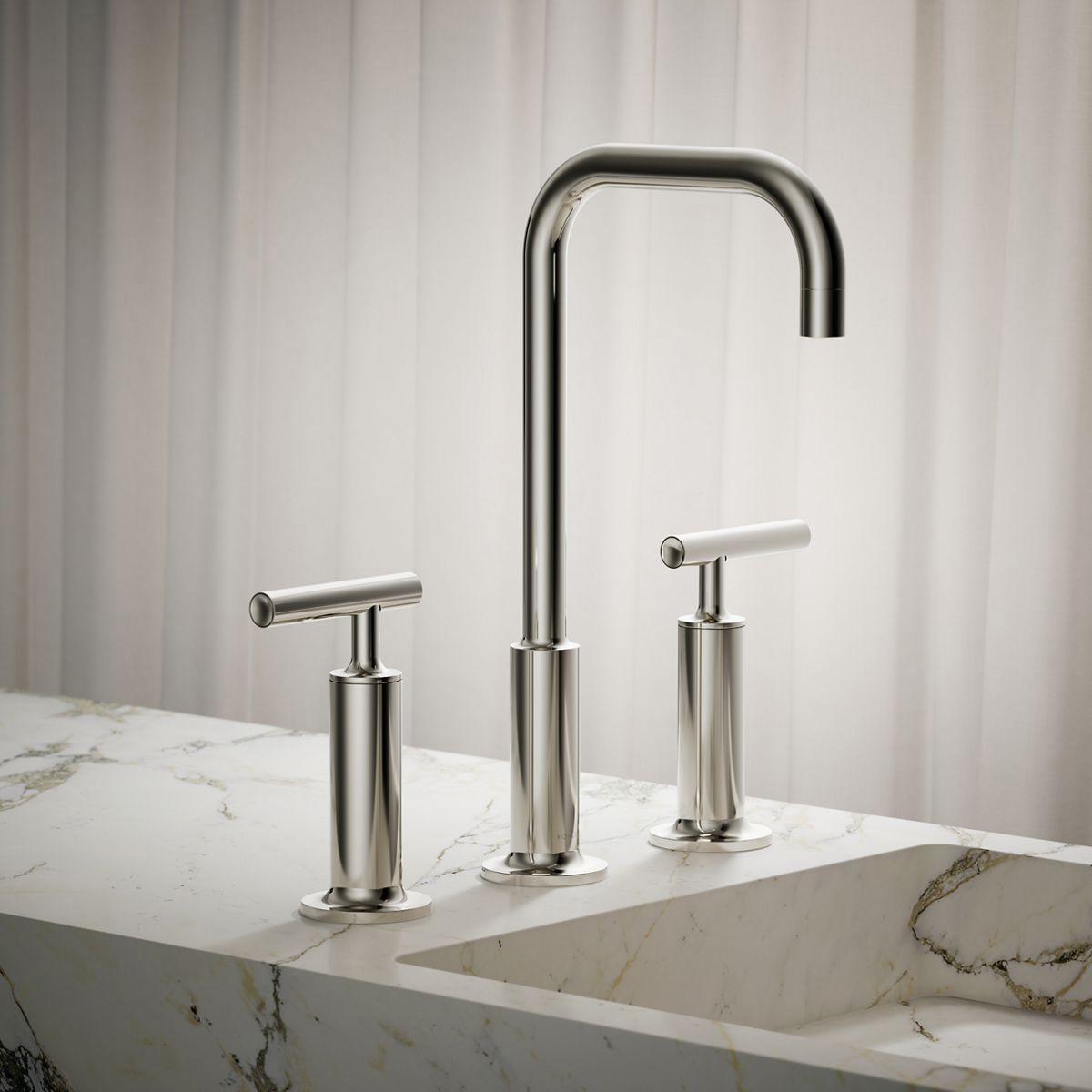 Combining architectural forms with sensual design lines, Purist faucets and accessories bring a touch of modern elegance to your bathroom. This sink faucet exemplifies the Purist collection's understated style, with its high gooseneck spout and high lever handles. Easy-to-install and leak-free UltraGlide(TM) valves provide reliable performance and durability. And the spout features laminar flow, which helps conserve water while preventing splashing.